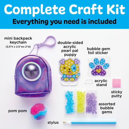Bubble Gems! Iridescent pearl art that POPS! If your kids enjoy diamond painting, crafting stickers and of course puppies, they will love this adorable mini backpack keychain! Featuring a puppy pearl pal that they can create, play with and tote around!