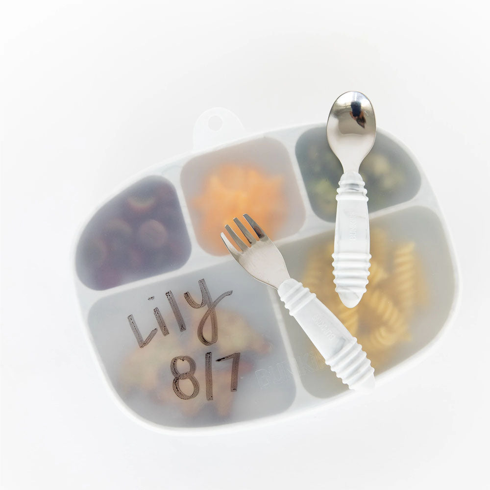 Here to save the day when little ones’ eyes are bigger than their bellies. The Silicone Stretch Lid is designed to fit snugly over our 5-section Grip Dish or Grip Tray, allowing for food to be prepped, then stored. Plus, you can write on the lid, labeling leftovers – just use a washable dry-erase or wet-erase marker.