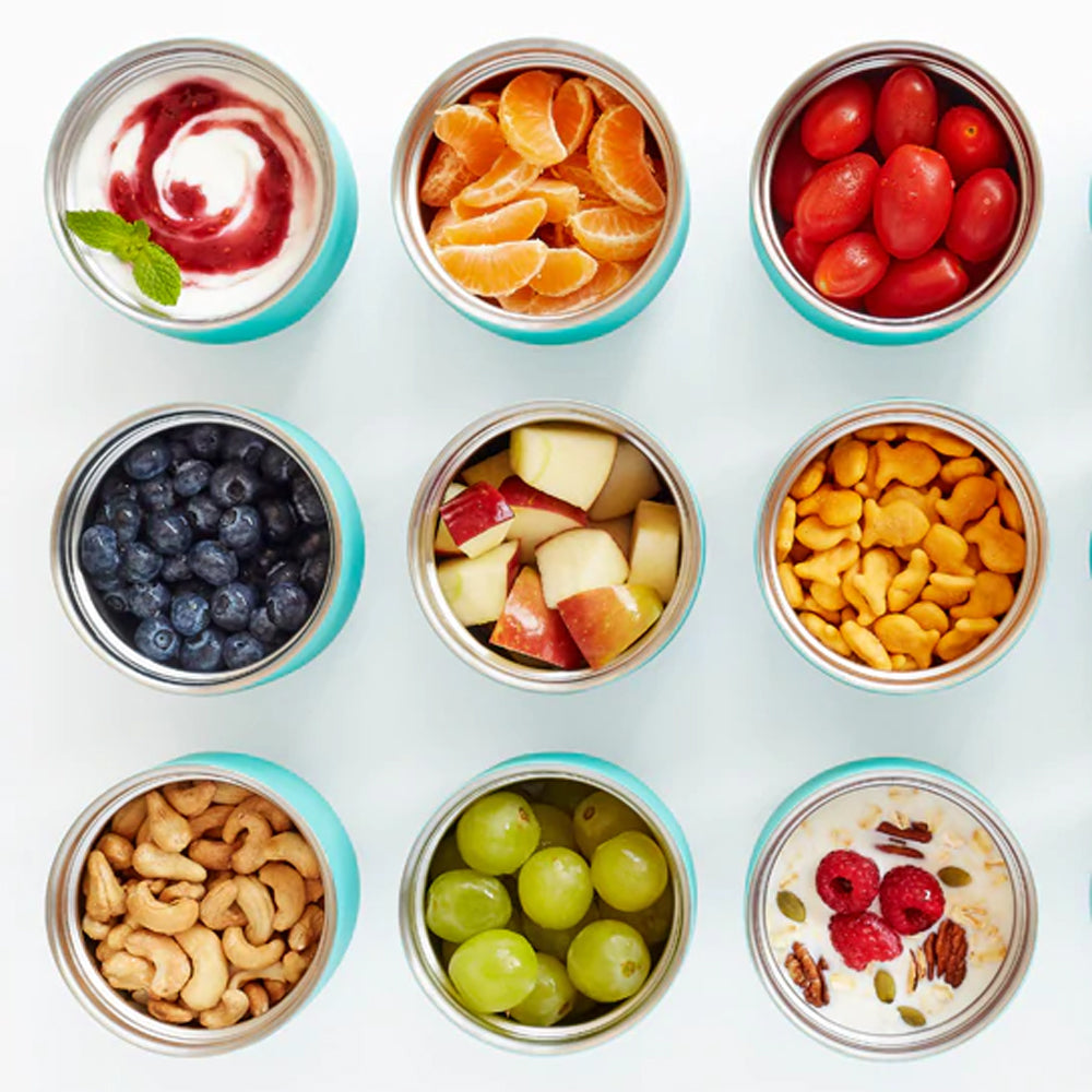 Presentamos el nuevo frasco de viaje de acero inoxidable de Zoku. Ya sea que esté de viaje o en el aula, el diseño de doble pared con aislamiento al vacío garantiza que su comida se mantendrá caliente durante 7 horas o fría durante 10,5 horas. Con su boca de diámetro ancho y su tapa texturizada apta para niños, este tarro de comida es perfecto tanto para niños como para adultos. La gran apertura es perfecta para llenar y comer sobre la marcha. Como beneficio adicional, los frascos de viaje están diseñados para apilarse ordenadamente y ayudar a aprovechar al máximo su espacio de almacenamiento.