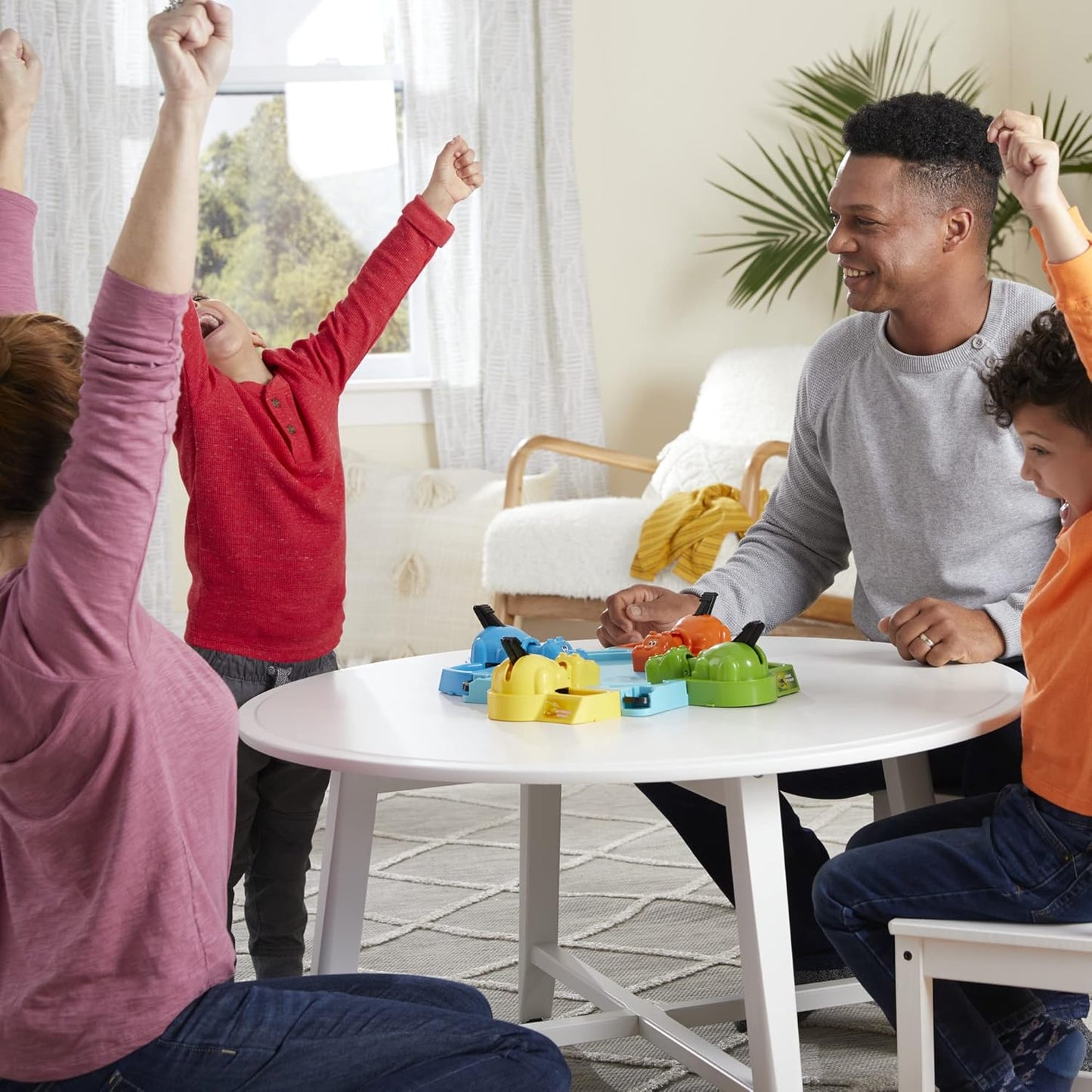 Have a chompin’ good time with this Hungry Hungry Hippos game! Once players release the marbles, the feeding frenzy begins! They'll need to move fast because all the hippos around the board will be chomping at the same time. The faster a player presses their hippo's tail, the faster it will eat the marbles. This fun and easy to learn preschool game lets kids choose 2 different ways to win: gobble up the most marbles, or be an instant winner by chomping the golden marble. Plus, it features convenient storage for the 20 marbles, making cleanup time a snap! A beloved children's game for ages 4 and up, it's one of the best family games for game night and a laugh-out-loud indoor game for kids playdates. Looking for fun gifts for kids? Preschool board games for families make great gifts for girls and boys any time of the year! Hungry Hungry Hippos and Hasbro Gaming and all related properties are trademarks of Hasbro.