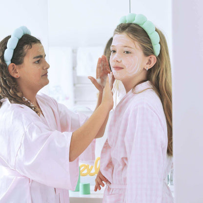 Immerse yourself in self-care with our super-cute aqua or sky spa headbands.