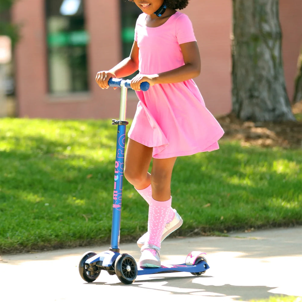 - Loved for its super smooth glide, the Maxi's 3-wheel kickboard-style ride feels a little like being on a skateboard, but with more control!