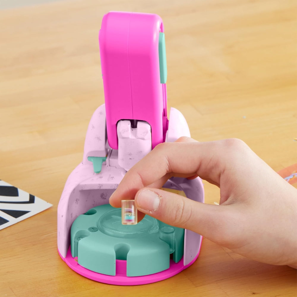 Don't toss it, transform it! Turn everyday items into fabulous upcycled beads with Craft-tastic Beadworks Studio! Take your used materials like old homework, plastic bottles, and cardboard boxes and transform them effortlessly into trendy beads with the simple-to-use punch. The Beadworks Studio is designed to easily punch and store your beads for threading bracelets in minutes! Use the included beads and charms to add some extra flair to your adorable upcycled bracelets. Comes with the Beadworks Studio punch tool, 40 gold beads, 40 silver beads, 20 clear beads, 5 metal charms, 20 jump rings, 6 yards of elastic, 6 yards of knotting cord, 1 wire threader, and instructions, all in a colorful box that's perfect for trying out the punch and making your first set of upcycled beads! For ages 8 and up.