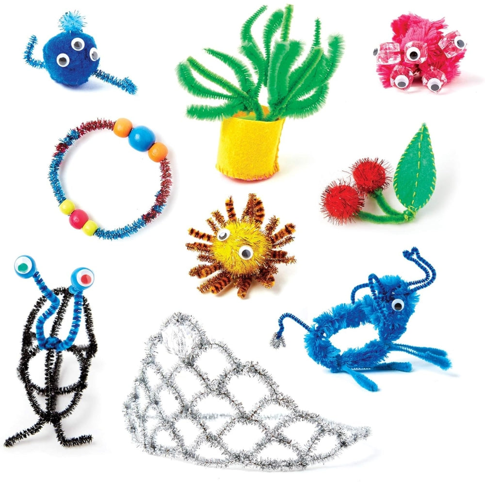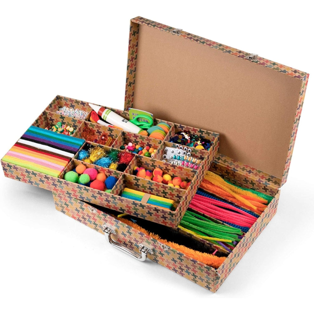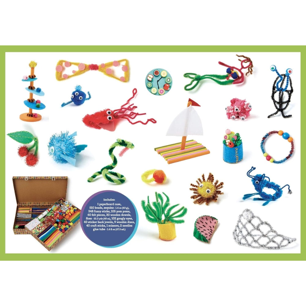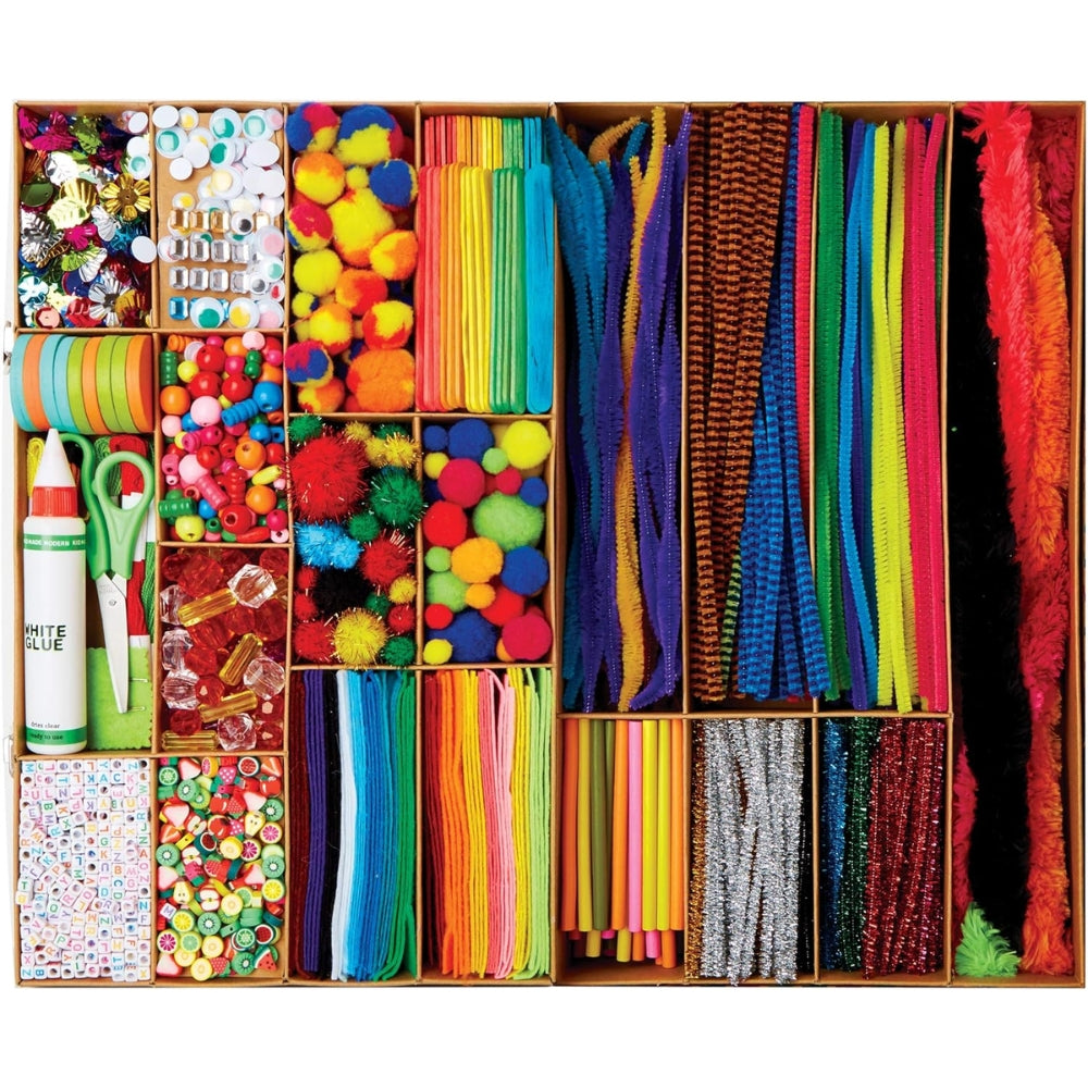 Con más de 1250 piezas, esta biblioteca de materiales es la manera perfecta de iniciar un centro de manualidades para tu hijo. Incluye todo lo que necesita para empezar, desde fieltro, palitos de peluche y pompones hasta pegamento, tijeras y cuentas. Solo tienes que añadir imaginación.