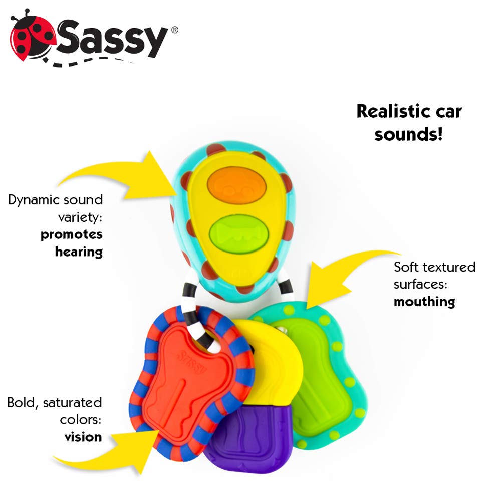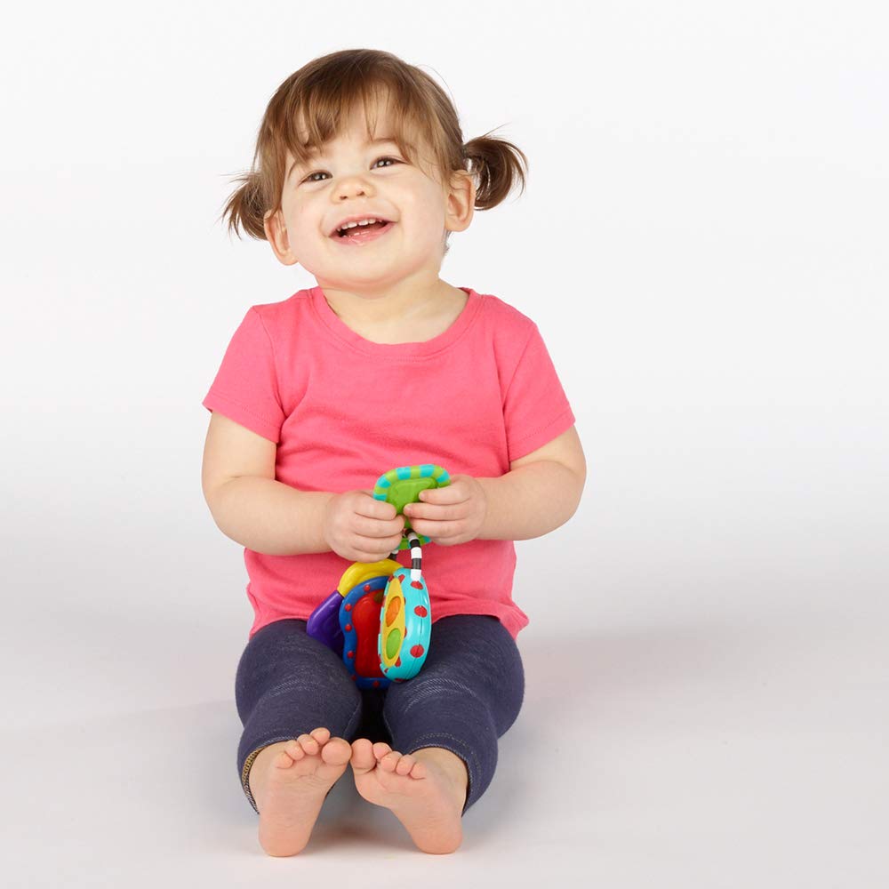 ¡Despierta la imaginación de tu bebé con llaves de juguete iguales a las tuyas! Presiona los botones para escuchar múltiples sonidos que ayudan a desarrollar la comprensión de causa y efecto. La variedad de texturas de las teclas fomenta la exploración táctil, lo que mejora la actividad cerebral, mientras que los colores vivos y saturados estimulan el desarrollo visual del bebé. Las superficies suaves y texturizadas de las teclas estimulan el uso de la boca, lo que ayuda a desarrollar las habilidades de comunicación.
