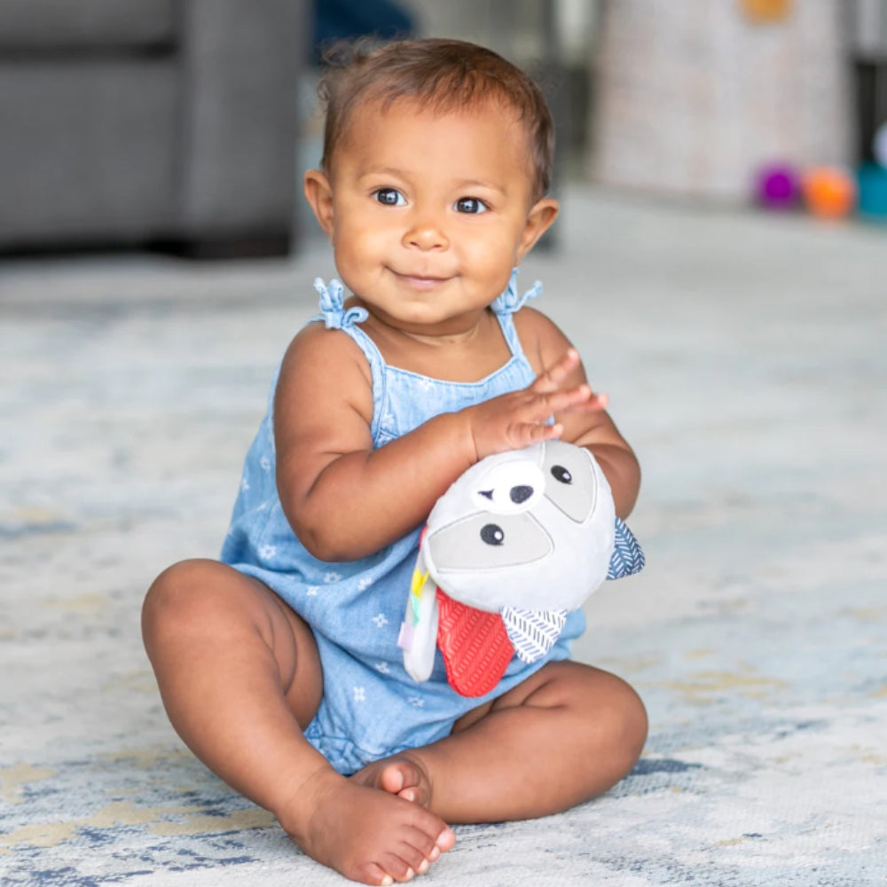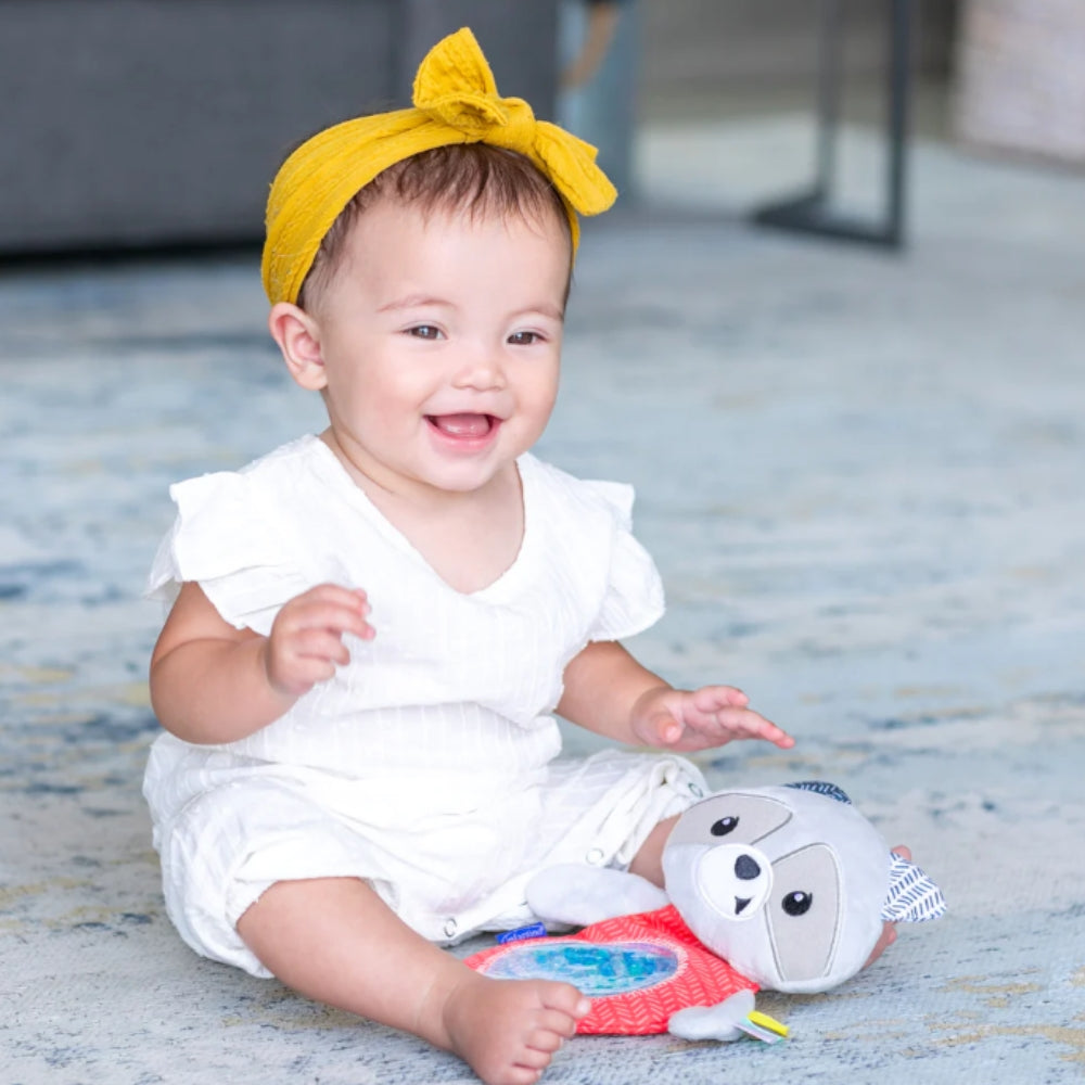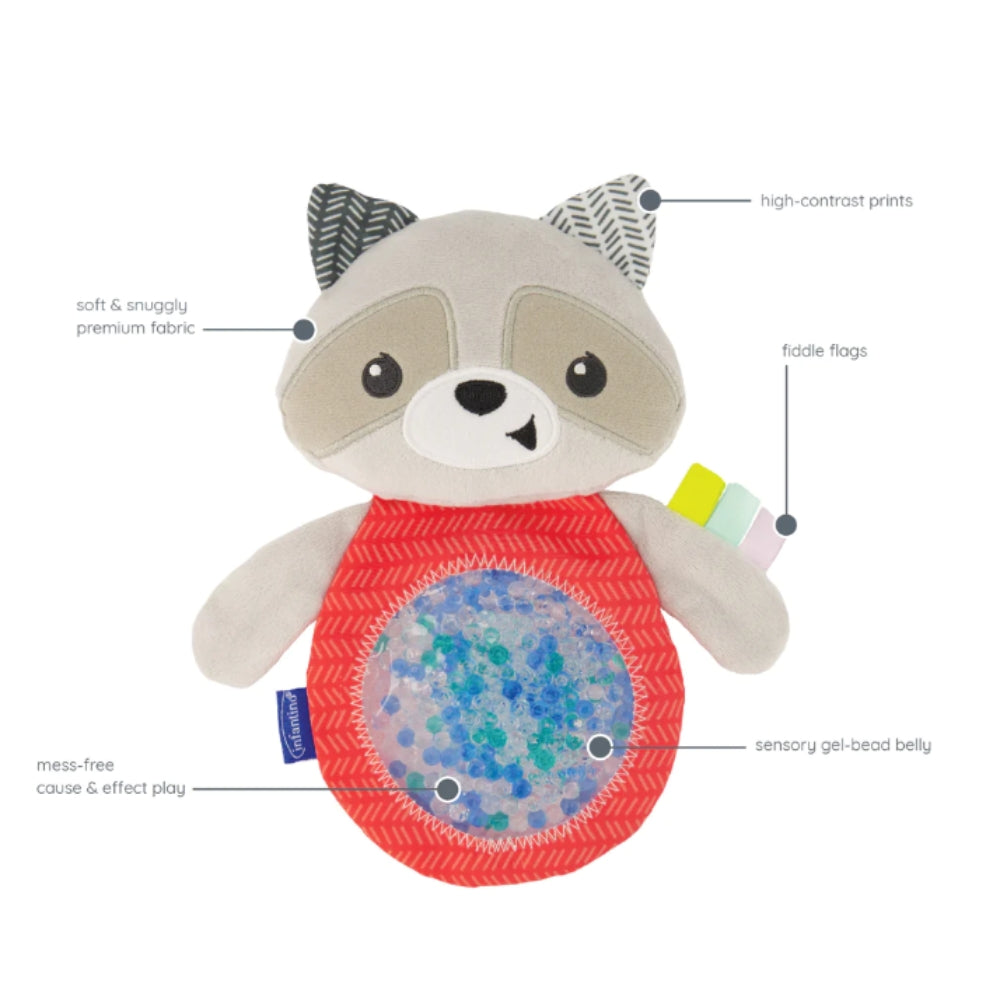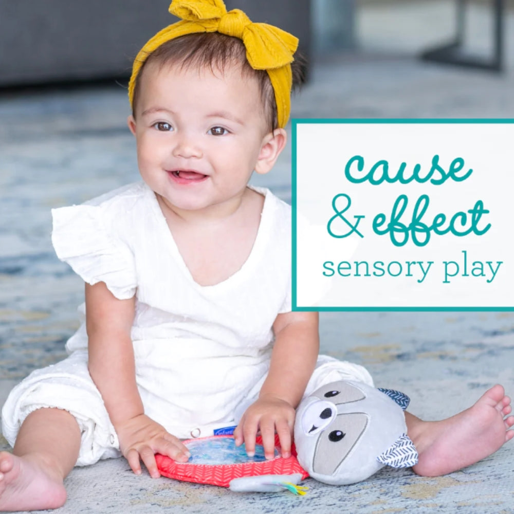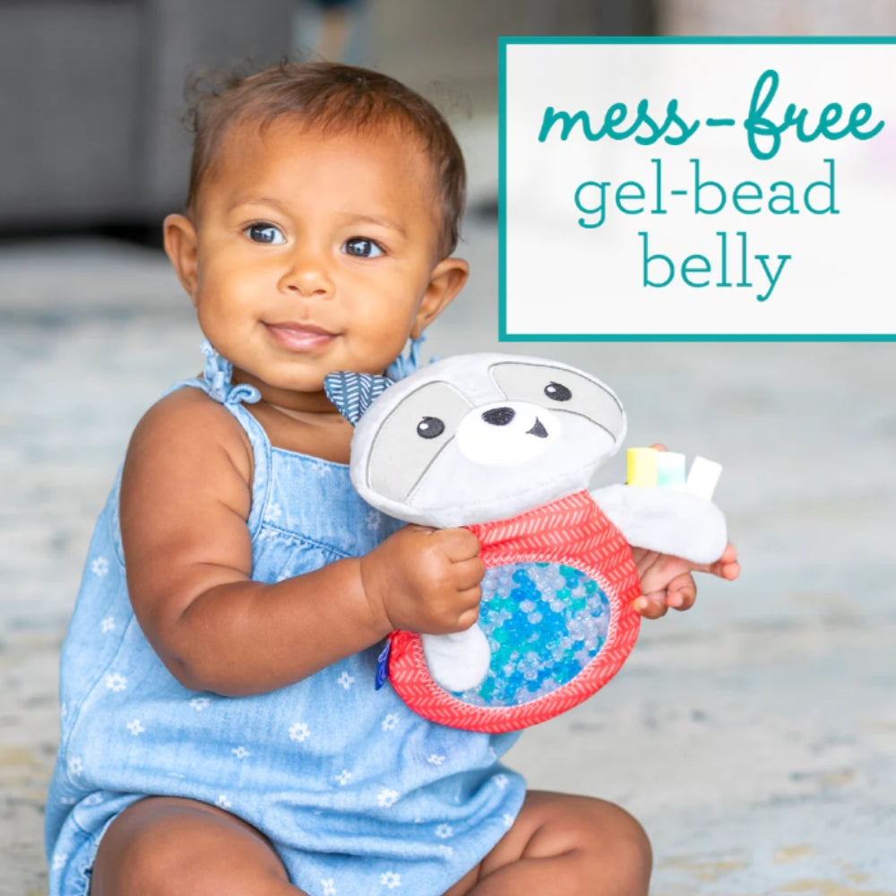 Wee wild ones will love the unique sensory adventures that await babies with this easy-to-hold gel-pouch pal made for irresistible, mess-free squishing that excites the senses. Babies and toddlers alike will find enjoyment as they learn about cause & effect and explore exciting colors, interesting fiddle flags, and snuggly textures.