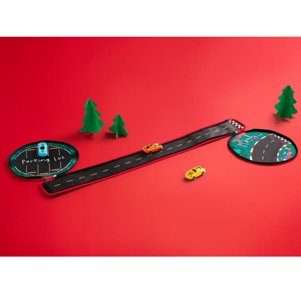 The My Car Carrier Set is a versatile and exciting toy that will provide endless hours of entertainment for children. This 4-piece set includes a car storage carrying case that conveniently unzips to reveal a racetrack and parking lot. With its vibrant colors and detailed design, this set is sure to capture the imagination of young car enthusiasts. The carrying case is made of high-quality cotton material, ensuring durability and longevity. Measuring 11 1/2" in diameter, it is the perfect size for little hands to carry and play with. Included in the set are three pull-back toy cars, adding an extra element of fun and excitement. Children can simply pull back the cars and watch them zoom across the racetrack, providing a thrilling racing experience. Designed for children ages 3 and up, this car carrier set is both entertaining and educational. It encourages imaginative play, fine motor skills development, and hand-eye coordination. Whether they are organizing the parking lot or racing their cars, children will have a blast with this versatile toy. Overall, the My Car Carrier Set is a must-have for any young car enthusiast. Its unique design, durable construction, and included toy cars make it a perfect gift for birthdays, holidays, or any special occasion. Get ready for endless hours of racing and parking fun with this exciting 4-piece set.
