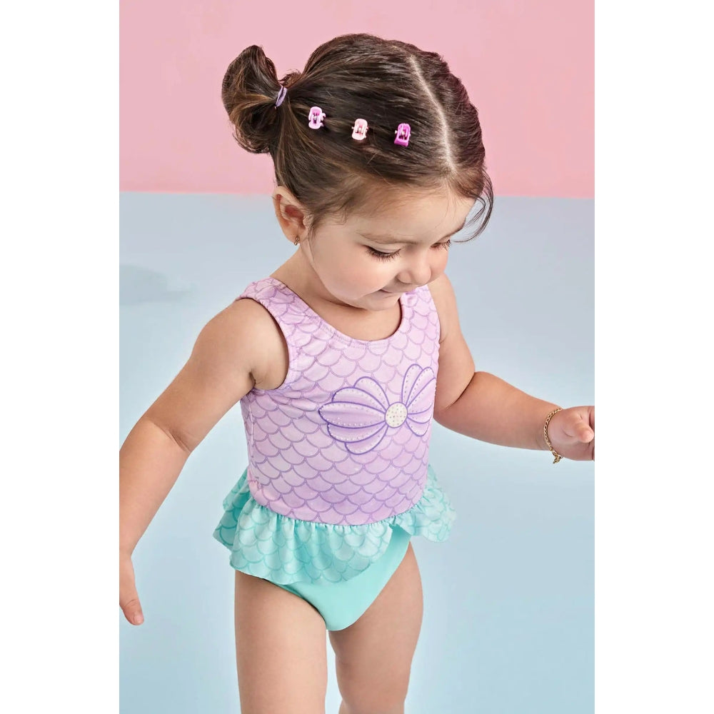 This one-piece swimsuit with a mermaid-inspired design is perfect for little girls who love fantasy and the sea. Featuring UV 50+ sun protection, quick-drying, and chlorine-resistant fabric, it offers comfort, safety, and a magical style for enjoying the beach or pool.