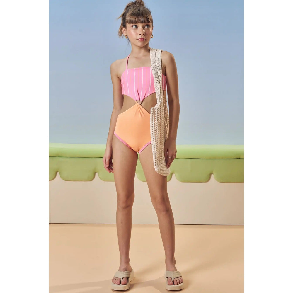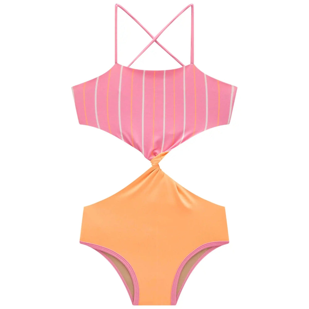 Traje de baño entero reversible con protección solar UV 50+. Su diseño práctico permite dos estilos en una sola prenda, ideal para combinar y variar. Confeccionado en tela resistente al cloro y de secado rápido, brinda comodidad, seguridad y estilo en la playa o la piscina.