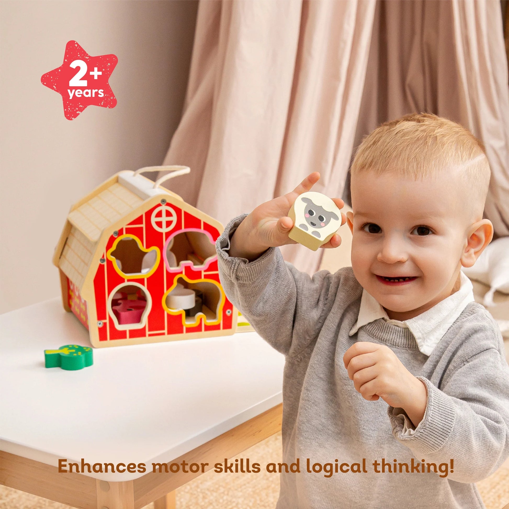- 10 Unique Sorting Pieces: Includes 6 farm animals, a farmer, and other farm-themed shapes to match with their designated slots.