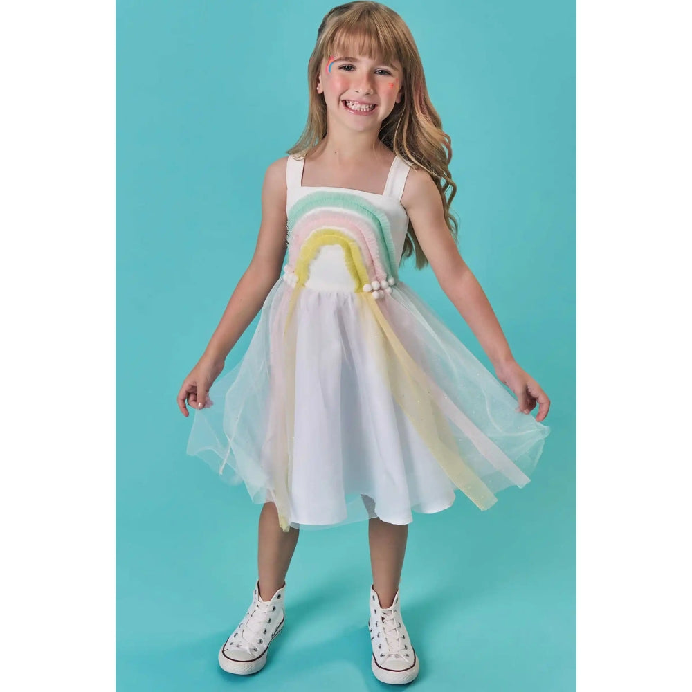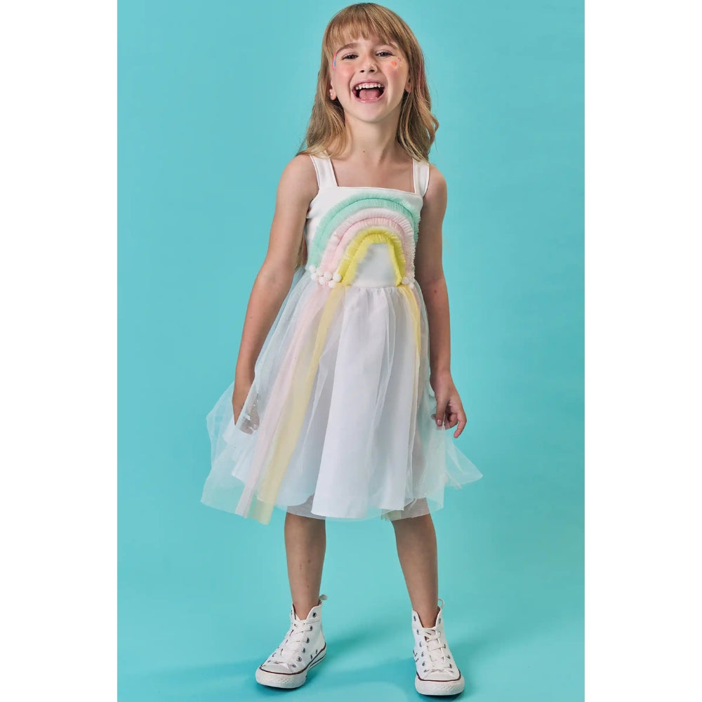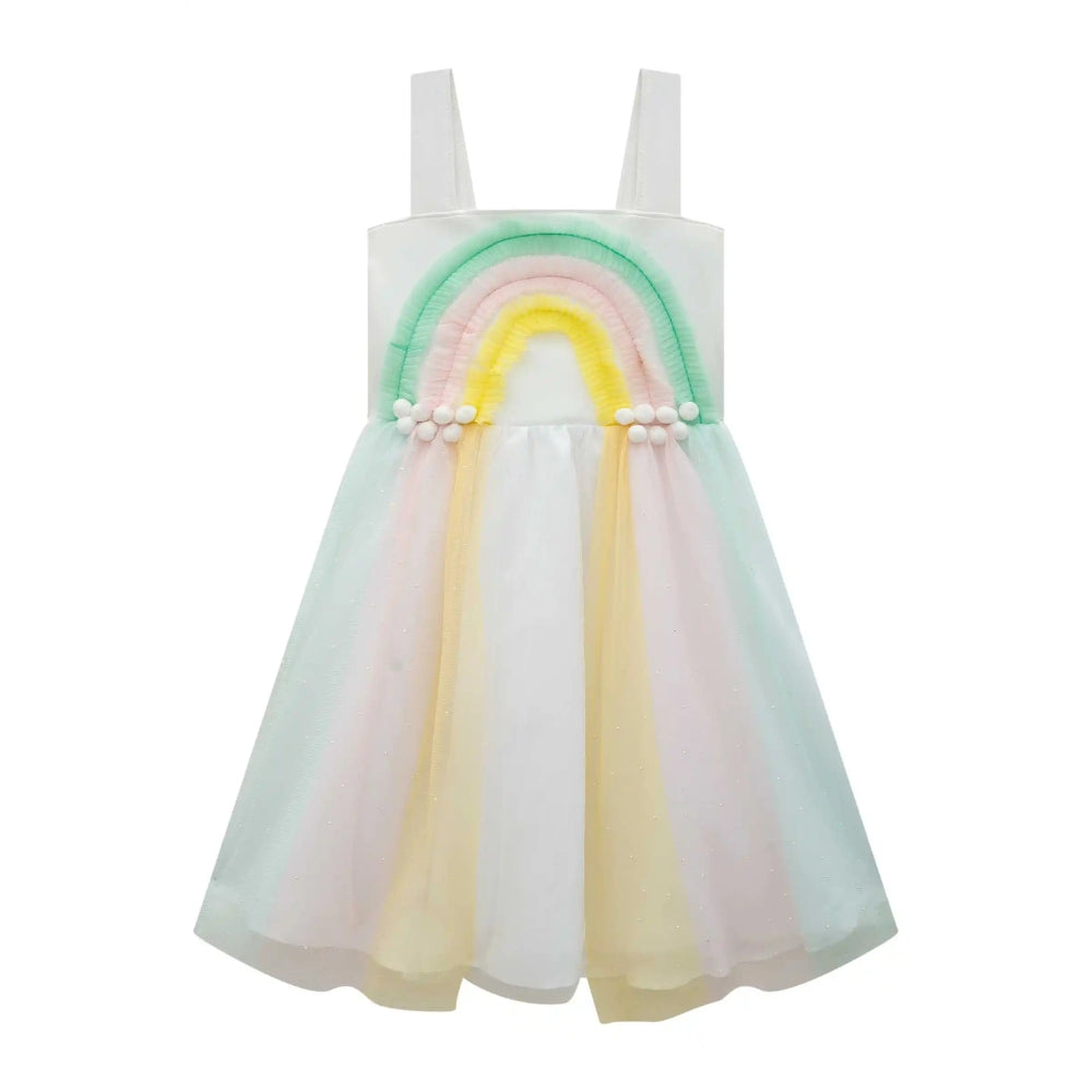 This children's costume features a vibrant rainbow design. Made from light and comfortable fabric, it is perfect for parties, school presentations, or dress-up play, bringing joy and imagination to any occasion.