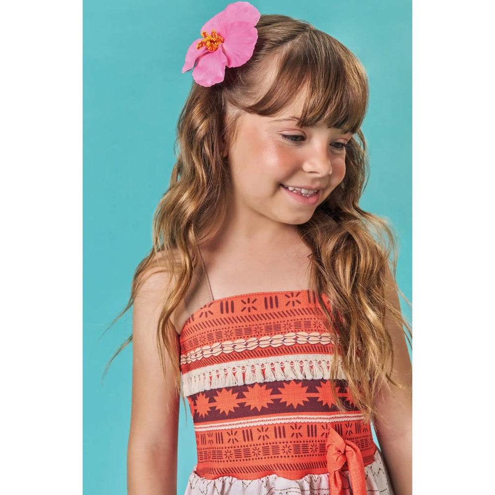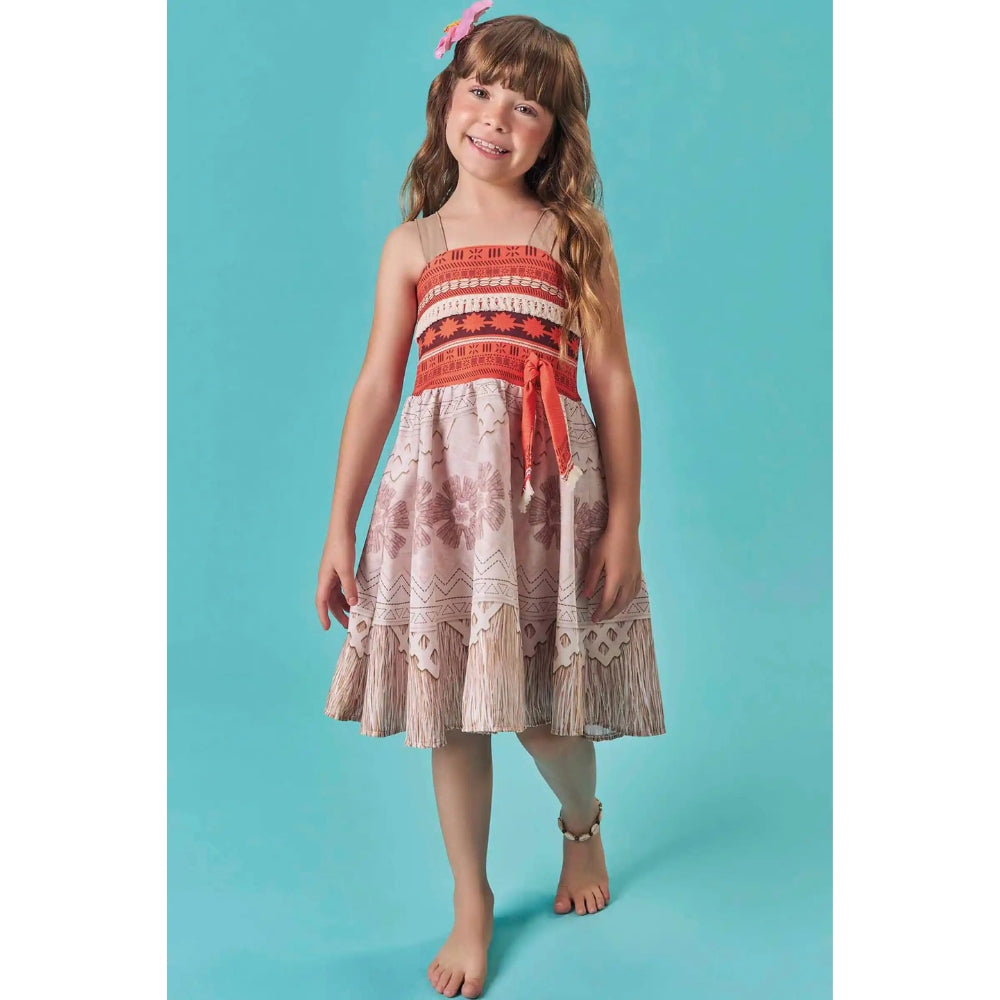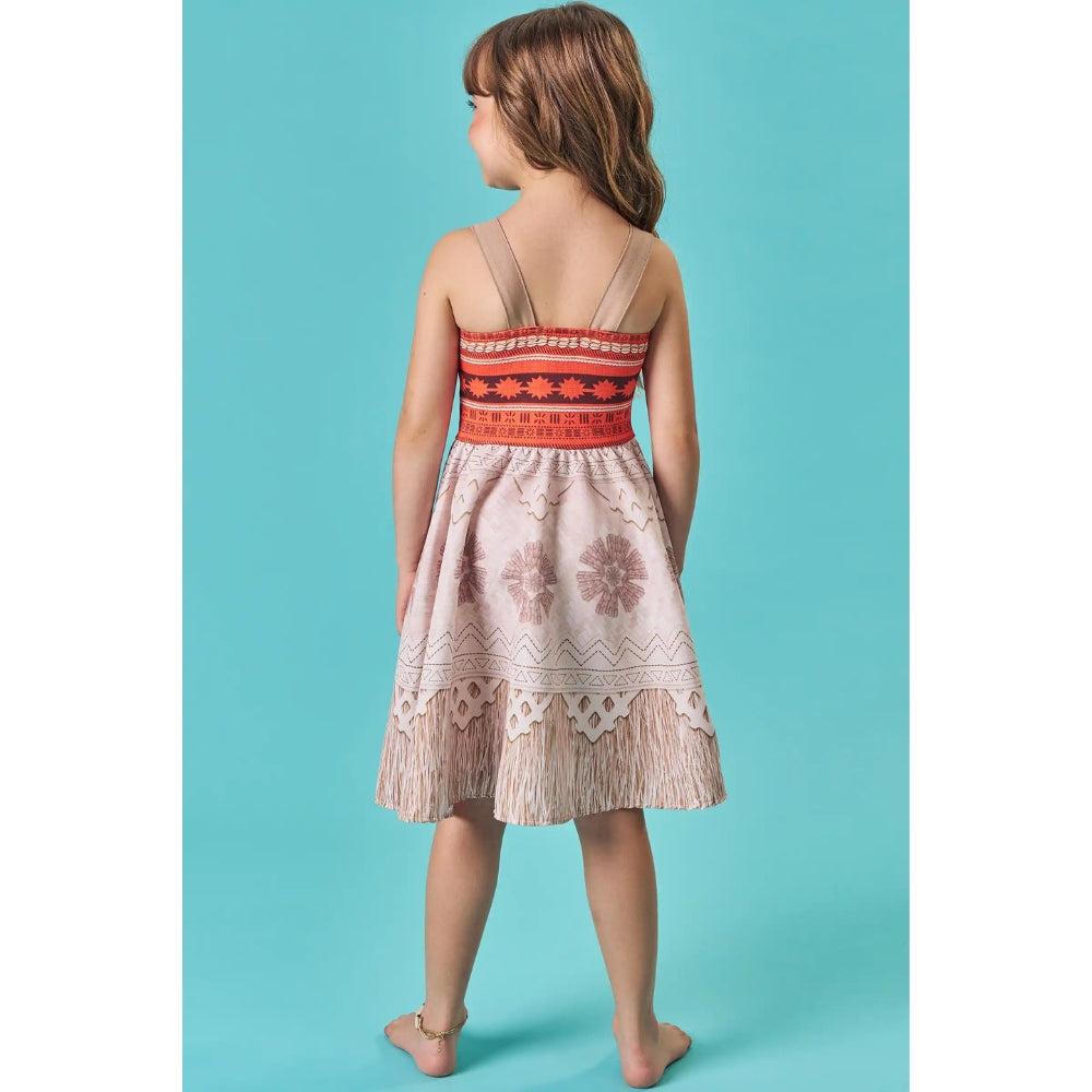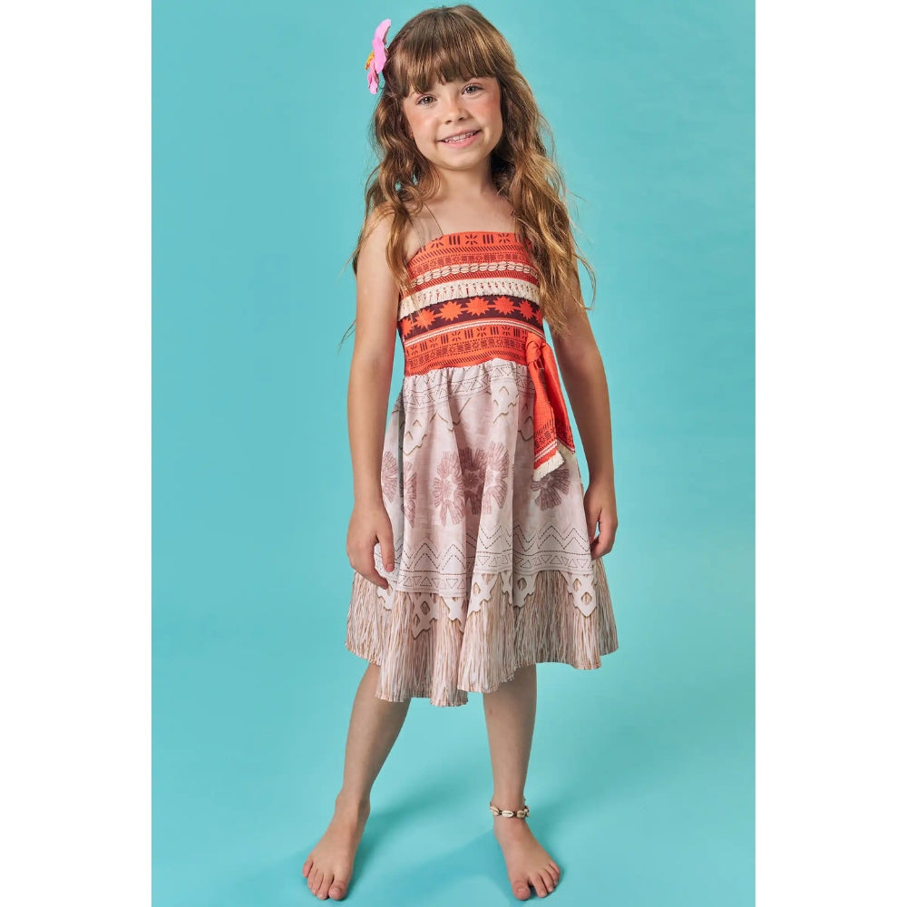 Disfraz infantil inspirado en la aventurera Moana. Incluye top y falda con estampados característicos, confeccionados en tela ligera y cómoda. Ideal para fiestas, presentaciones escolares o juegos de rol, permitiendo a los niños vivir su propia aventura en el mar.