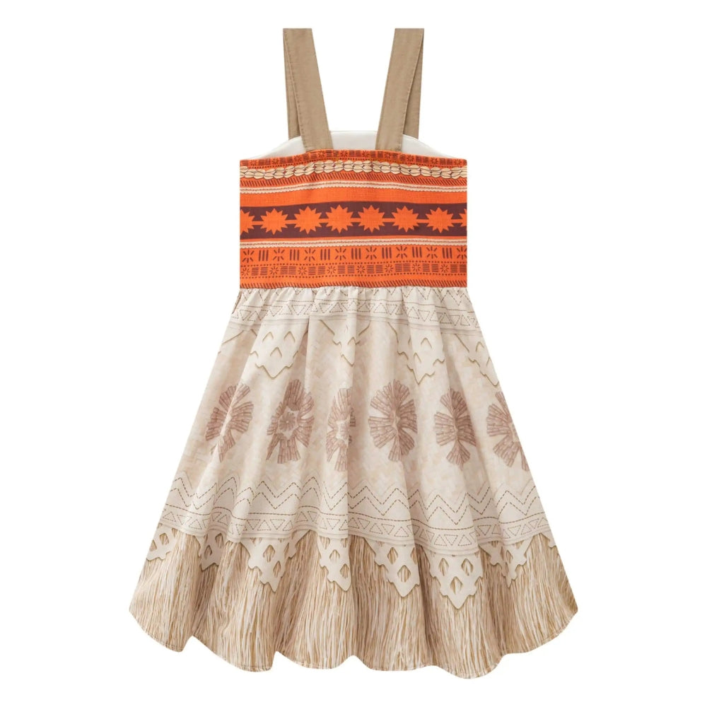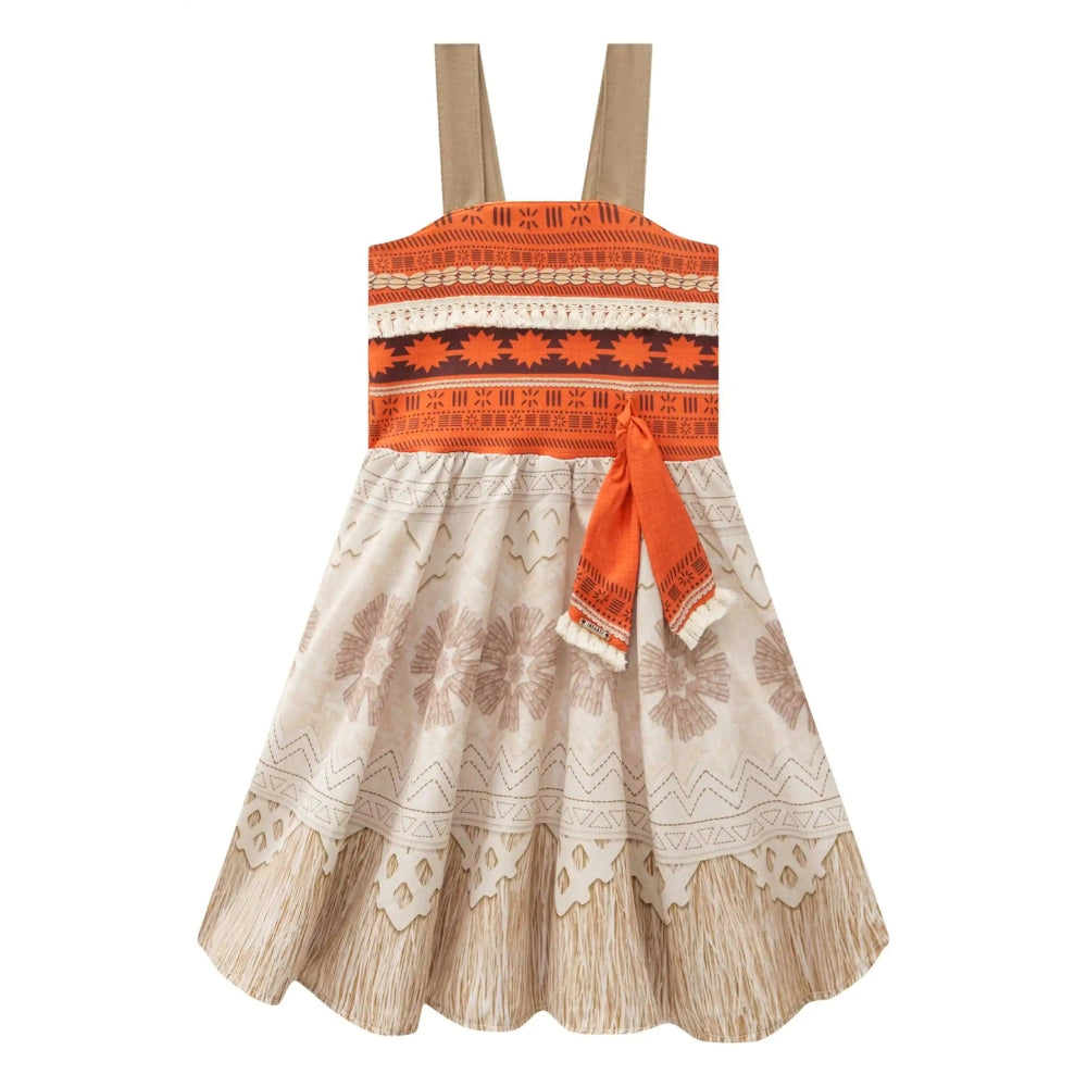 This children's costume is inspired by the adventurous Moana. It includes a top and skirt with her signature prints, made from a light and comfortable fabric. Perfect for parties, school presentations, or role-playing games, allowing children to experience their own ocean adventure.