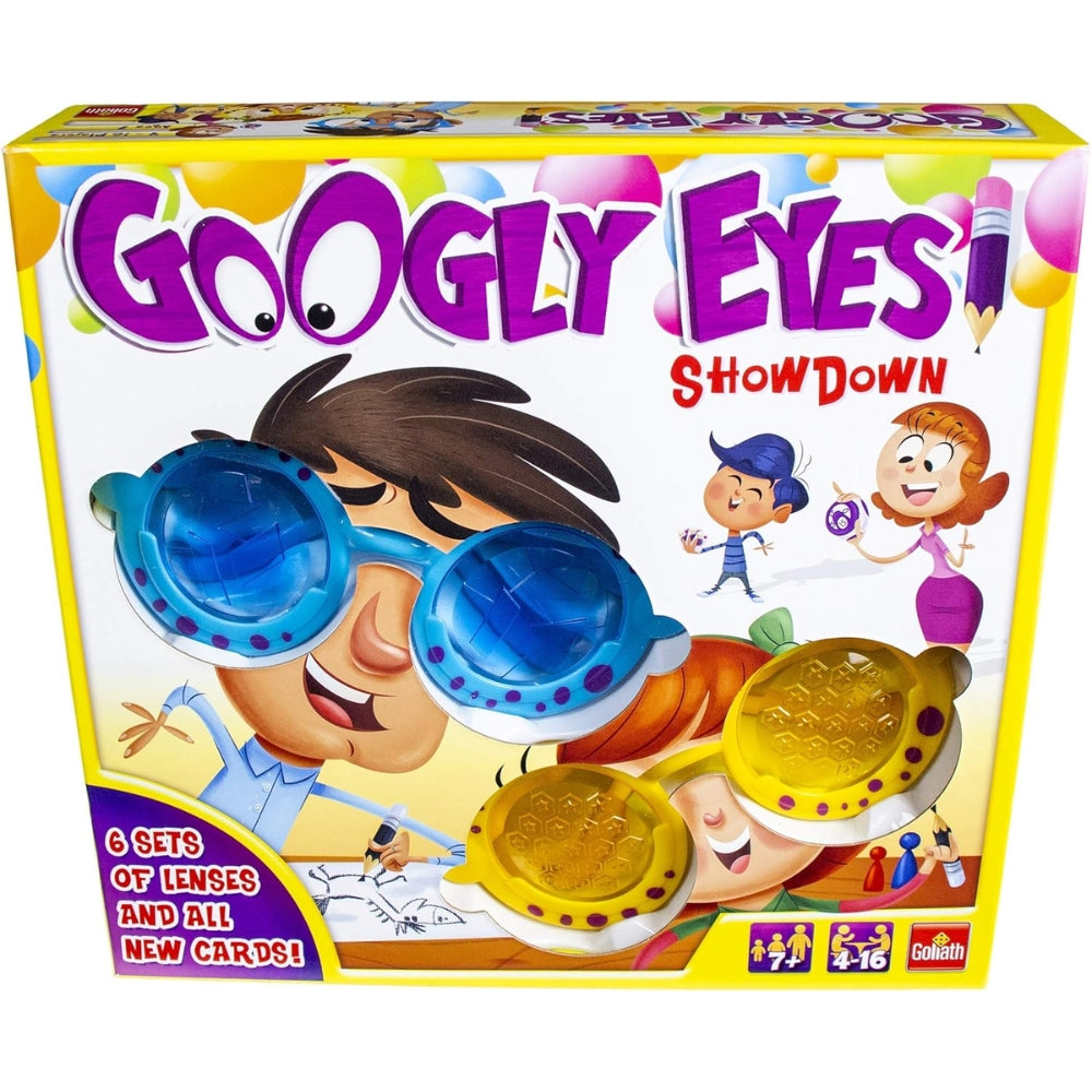 Googly eyes is the hilarious family game that challenges your vision and leaves you googling for more! Put on the zany, vision-altering Google Eye glasses, and start to draw while your team tries to guess what you're drawing. Is that an igloo or a turtle? A birthday cake or a fortress? Players take turns drawing and guessing, so everyone gets a chance to wear the glasses. The glasses come with three sets of lenses that range from mild changes to mind-blowing fun, so no one can see (or draw) straight! Googly eyes is a fun twist on classic drawing games that lets players of different ages and skill levels compete on equal terms, since the goggles make it fun and challenging for everyone. The first team to reach finish wins! For 4-16 players, ages 7 and up.