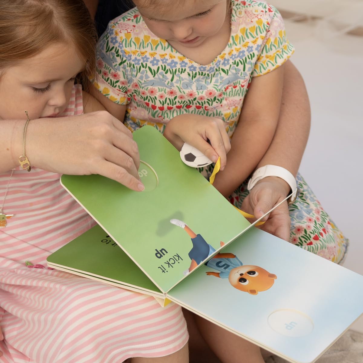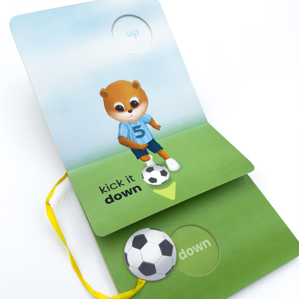 Let's talk about practice! Introducing "Kick It," an interactive book that makes learning opposites a playful adventure! This book features a die-cut soccer ball attached with a string for hands-on fun. Move the ball up and down and all around the pages.