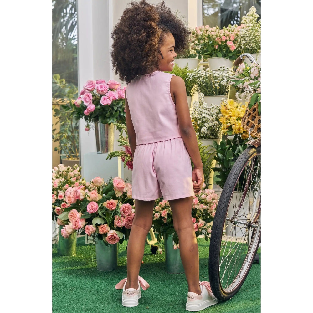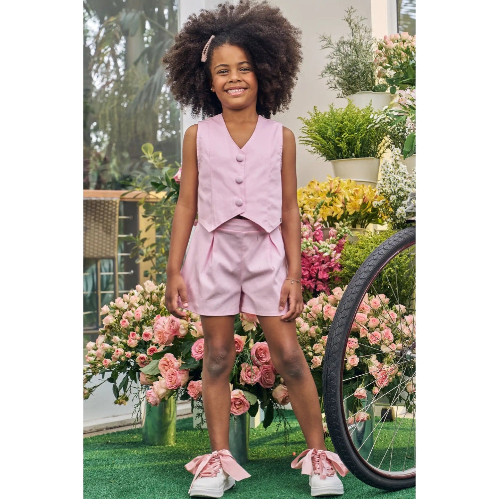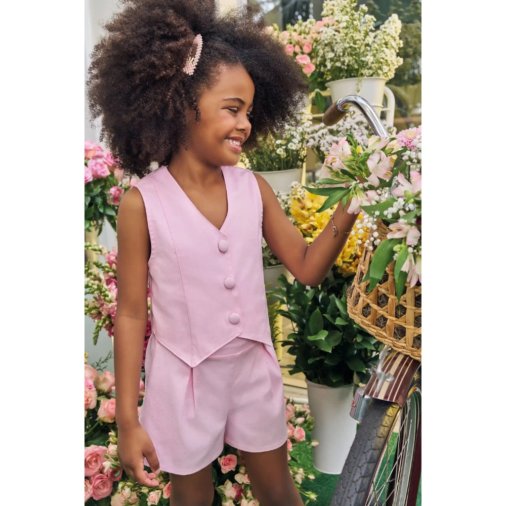 El vest complementa el short creando un outfit práctico y versátil, fácil de combinar con otras prendas.