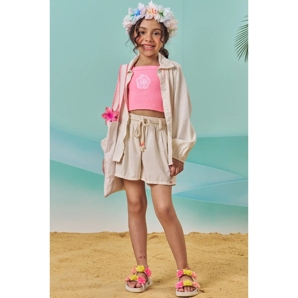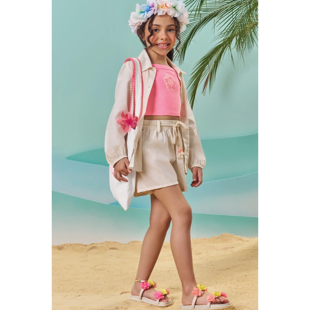 Conjunto versátil de tres piezas que incluye top sin mangas, short y camisa a juego, ideal para crear distintos looks con una sola combinación. Confeccionado en tela cómoda y ligera, ofrece frescura y libertad de movimiento para el día a día.