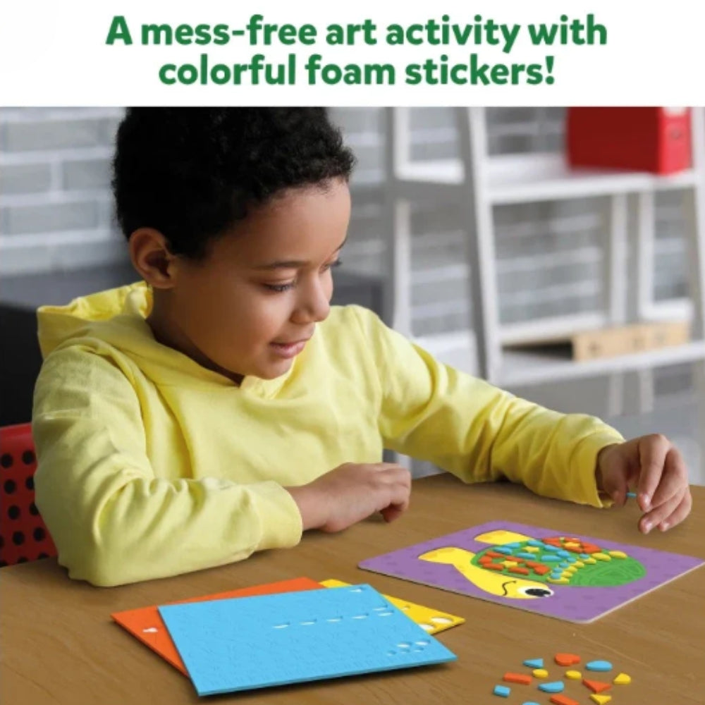 Presentamos Diversión con Espuma: ¡un set de actividades artísticas con pegatinas que no ensucia, especialmente diseñado para cautivar a los niños con el juego creativo independiente en casa o fuera de ella! Con más de 800 pegatinas de espuma de colores, tu hijo dará rienda suelta a su creatividad y motricidad fina mientras decora animales vibrantes y alegres. ¡Deja volar su imaginación y crea un mundo de diversión!