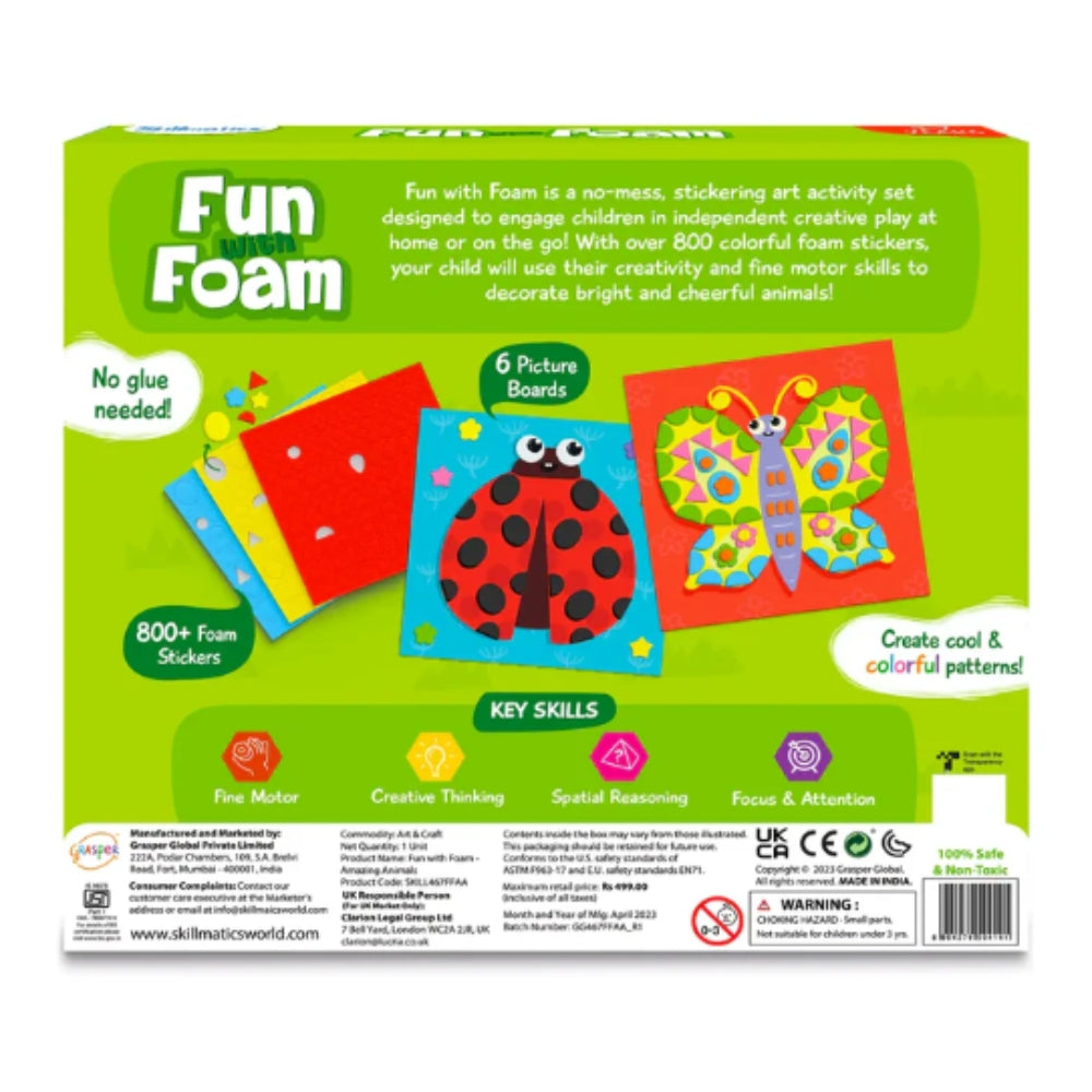 Introducing Fun with Foam - a no-mess, stickering art activity set specially crafted to captivate kids with independent creative play at home or on the go! Packed with 800+ colorful foam stickers, your child will unleash their creativity and fine motor skills while decorating vibrant and cheerful animals! Let their imagination run wild and create a world of fun!