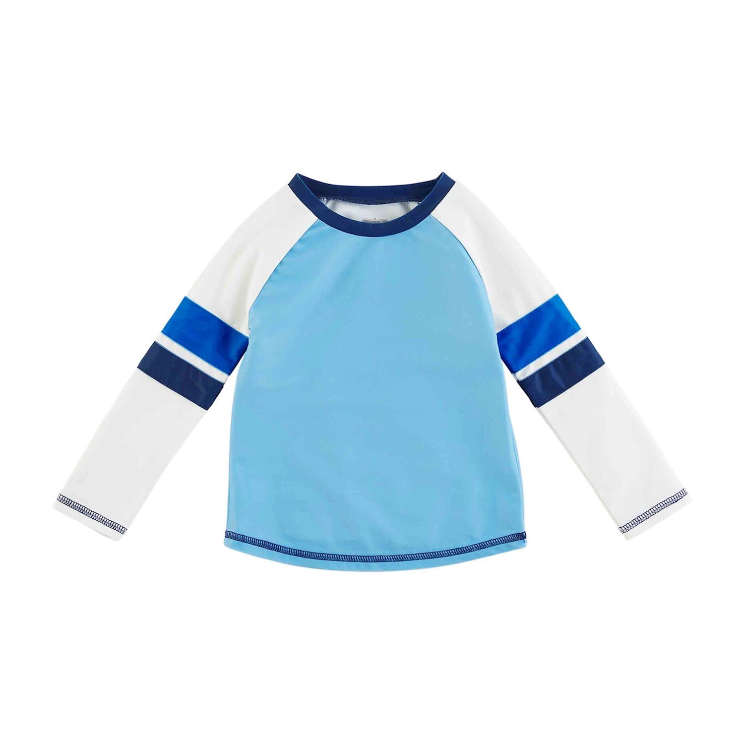 Blue rash guard for boys, ideal for protection and comfort in the water.