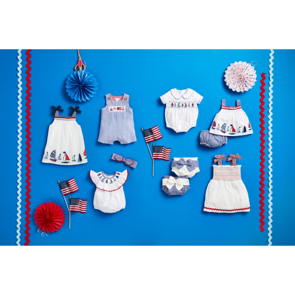 The Collared Sailboat Baby Bubble is a charming and classic piece for your little one's wardrobe. Crafted from soft and breathable 100% cotton poplin, this adorable bubble features a timeless Peter Pan collar that adds a touch of elegance. The smocked chest is beautifully embroidered with sailboat motifs, creating a delightful nautical theme. Gingham piping accents provide a subtle contrast, enhancing the overall design. Practical inner leg snaps ensure easy diaper changes, making it as functional as it is stylish. Perfect for babies aged 0-3 months, this bubble is an ideal choice for special occasions or everyday wear, offering both comfort and cuteness.