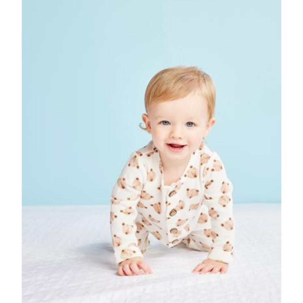 El body para bebé Bear está confeccionado en suave y acogedor algodón gofrado, lo que garantiza la máxima comodidad para tu pequeño. Este adorable body cuenta con un exclusivo cierre frontal con botones de madera de coco, que le aporta un toque de encanto natural. Los puños y tobillos con vuelta proporcionan un ajuste ceñido y evitan que las mangas y las perneras se suban. Además, cuenta con prácticos broches en la parte interior de las piernas, lo que facilita el cambio de pañal. Perfecto para bebés de 3 a 6 meses, este body para bebé Bear combina estilo y funcionalidad, convirtiéndolo en una prenda imprescindible en el armario de tu bebé.