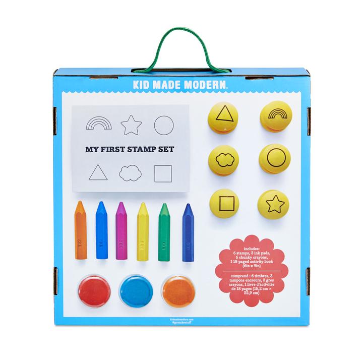 Los sellos y crayones grandes y de colores brillantes son fáciles de manipular por manos pequeñas
