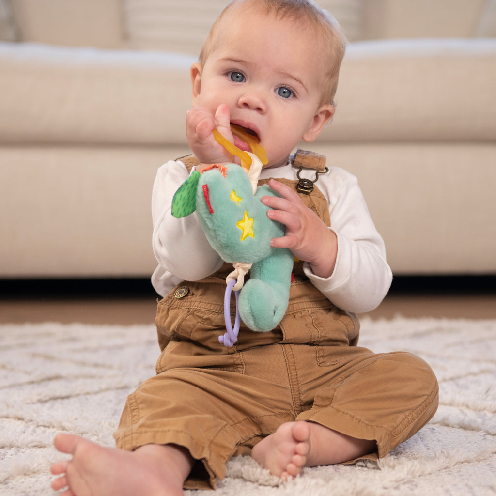 Thanks to its integrated clip, it easily attaches to car seats, strollers, or activity gyms, making it perfect for both home play and outings.