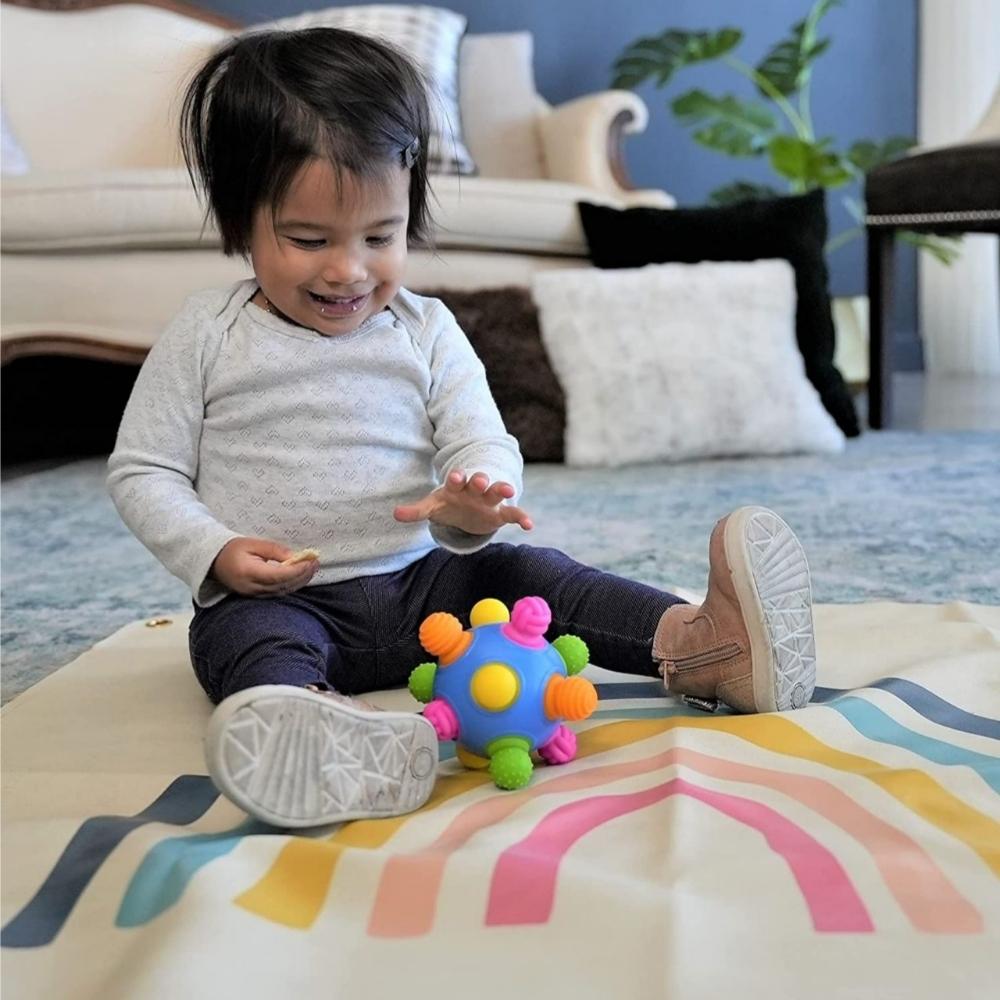 ¡Empuje, tire, mastique, tambalee, ruede y persiga! WOBLII es una pelota simple pero multidimensional que está diseñada para crecer con sus hijos a medida que se desarrollan. Las manos pequeñas estarán ocupadas durante horas una vez que les presente WOBLII Sensory Ball: