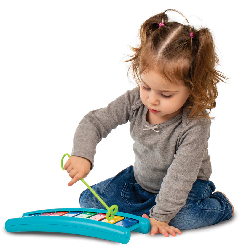 With the note bars safely enclosed and out of reach of small hands, your toddler is guaranteed hours of safe musical play that not only fosters curiosity but also enhances fine motor skills as they tap the easy-grip mallet against the tuneful bars. And when the fun is over, simply clip the mallet away on the base of the xylophone for easy storage.