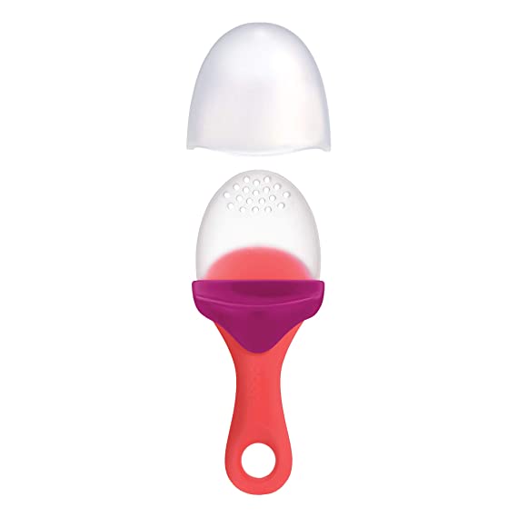 • La cubierta de silicona suave permite que el bebé se autoalimente con frutas y verduras a través de pequeños orificios