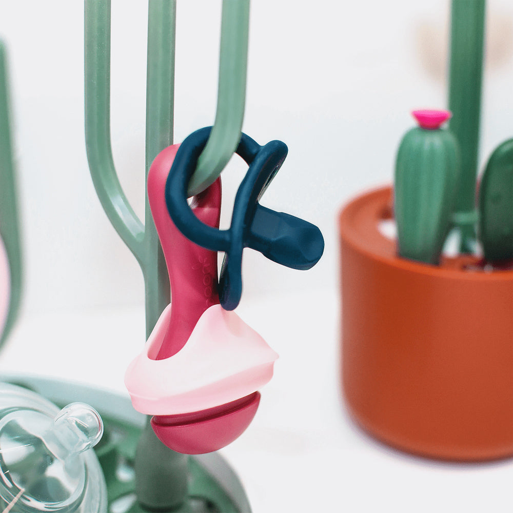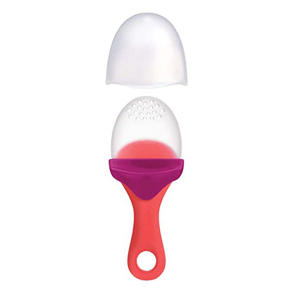 CHEW ON THIS. We don't mean to mouth off, but let's be real about how mesh feeders can be a real mess and difficult to clean. Our silicone teething feeder has some bite to it; allowing for easy feeding with its interior firm stem that forces food out where babies can get to it. It's simple to clean and more durable than mesh feeders. Boon totally has a handle on baby's snack time and when something is this good, we think it's okay to get a little mouthy about it.