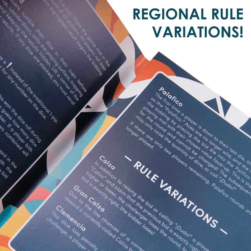 Dudo has a long and storied history spanning hundreds of years with dozens of rule variations. We've chosen our favorite set of rules, but feel free to use your own house rules, or the Calza, Gran Calza, and Clemencia rule variations from the rulebook.