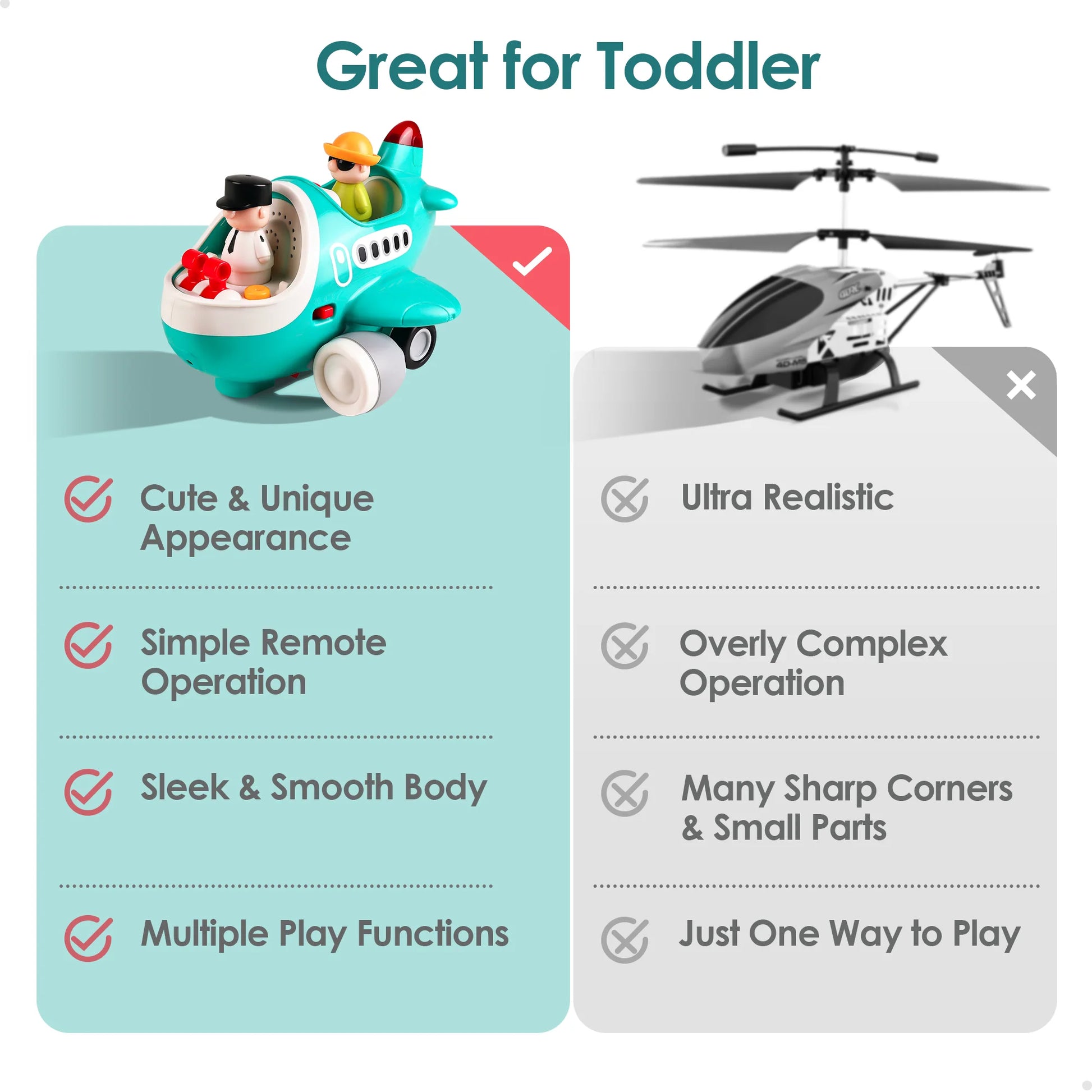 The RC airplane toy contain 2 modes, Automatic mode and Remote control mode. Each mode is interesting in its way.