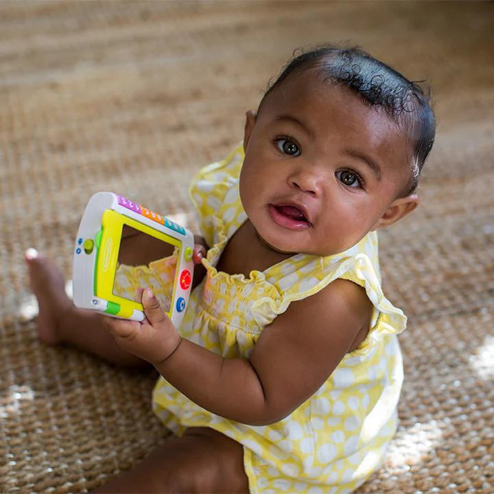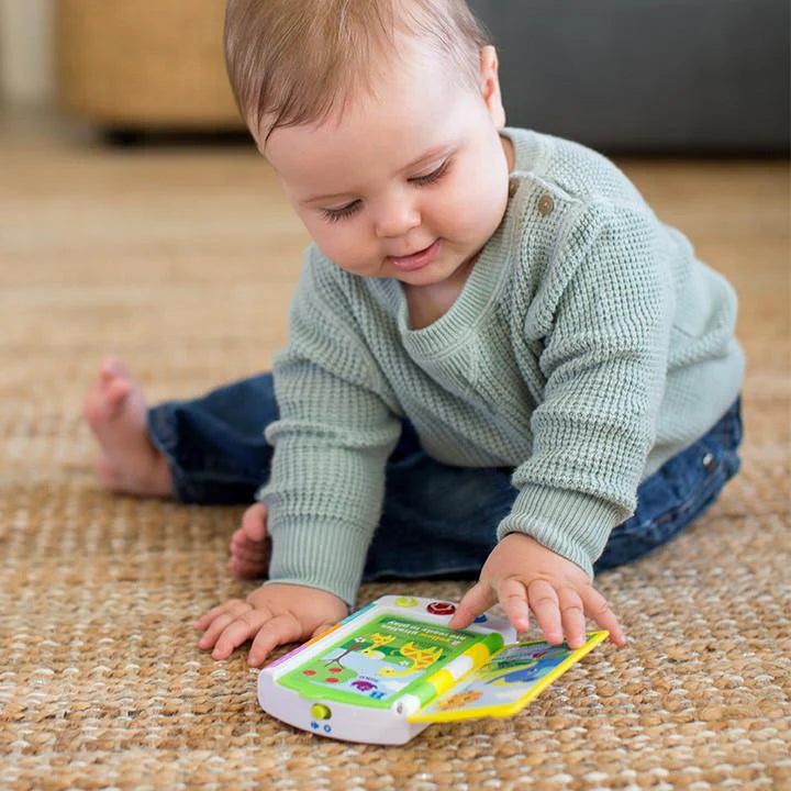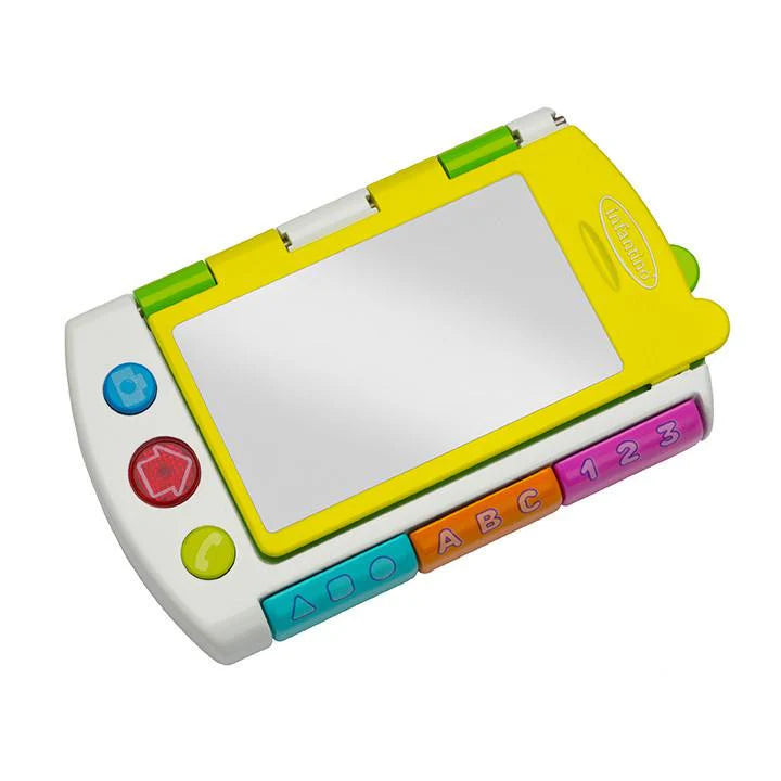This fun phone book is filled with surprises! A large mirror and interactive buttons on the front are perfect for imaginative phone play. Make a call or take a picture. Open the phone book pages to activate learning content, as the phone reads a simple story and prompts children to discover shapes, colors and numbers. Features 4 original songs, 43 encouraging phrases and 6 fun sound effects.
