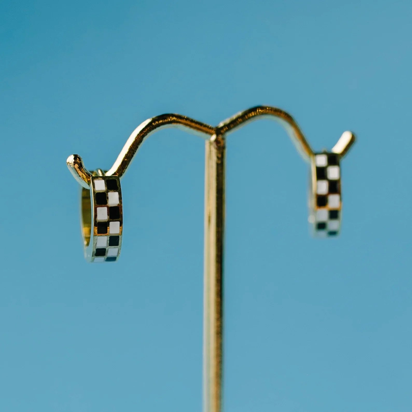 Argollas Back/White Checkered Huggies 8mm (Cubiertos 18K)