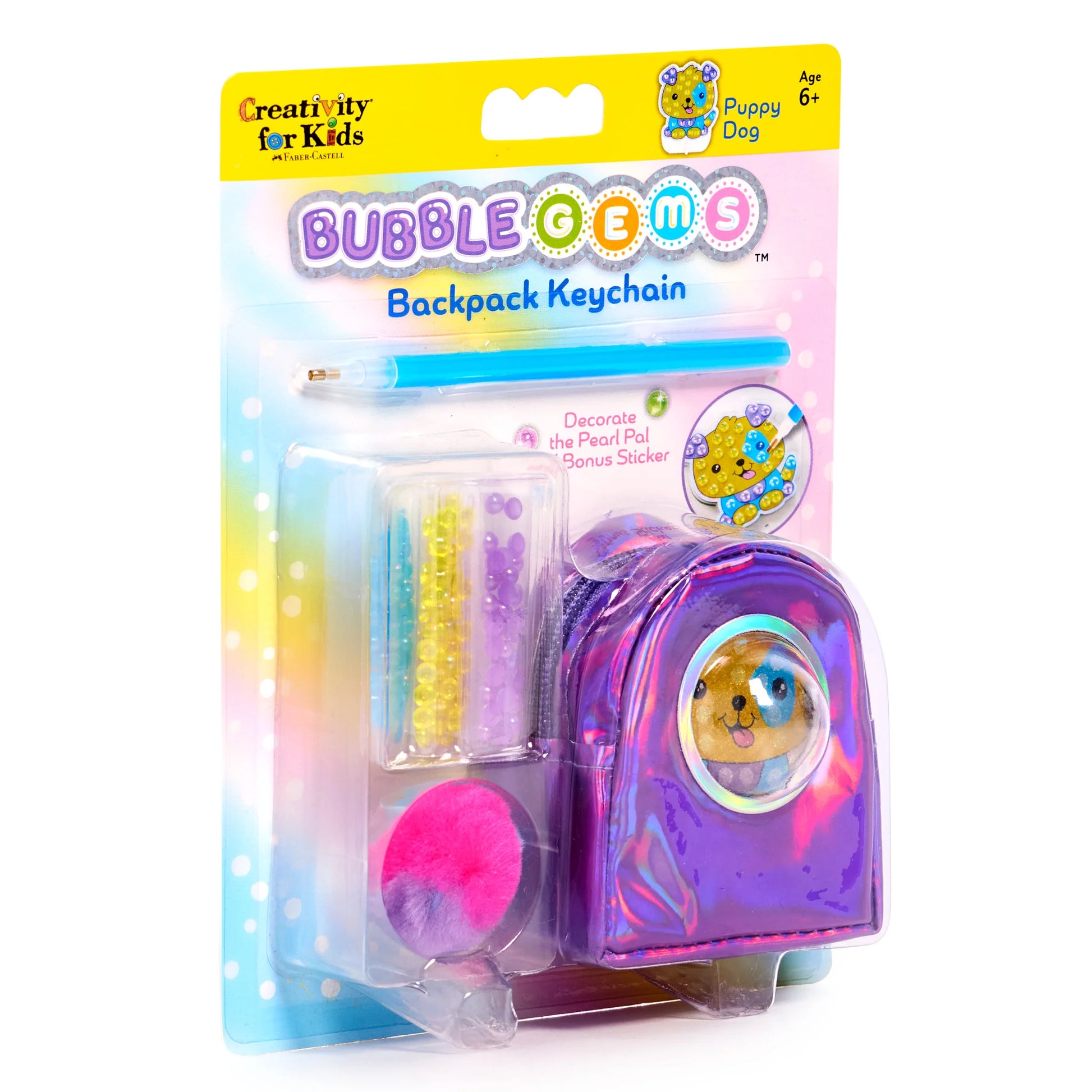 Bubble Gems! Iridescent pearl art that POPS! If your kids enjoy diamond painting, crafting stickers and of course puppies, they will love this adorable mini backpack keychain! Featuring a puppy pearl pal that they can create, play with and tote around!