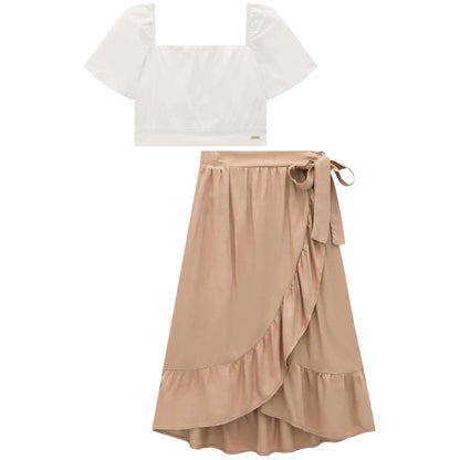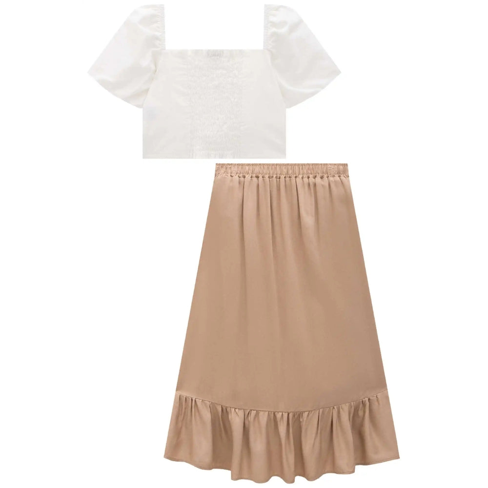 Conjunto de Blusa Manga Corta y Falda Khaki
