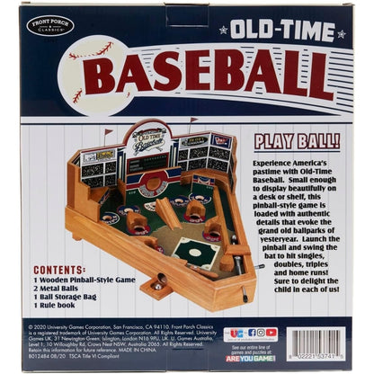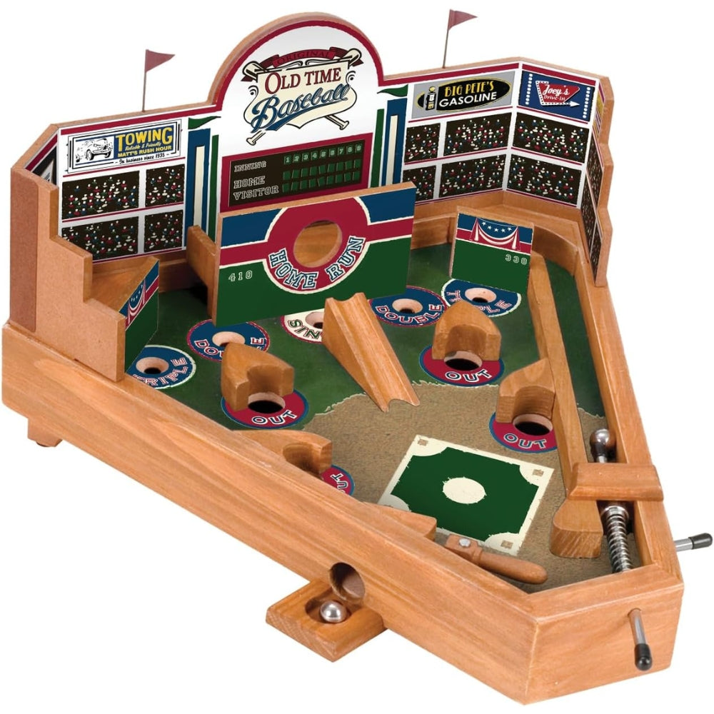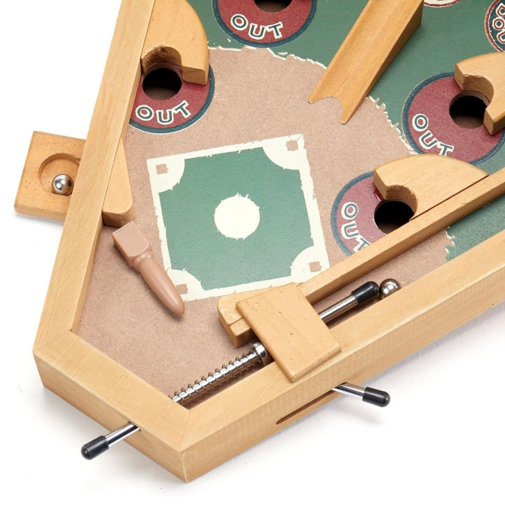 Play BallExperience America's pastime with this old-fashioned baseball game that's crafted from quality wood to replicate a major league baseball stadium. Small enough to display beautifully on a desk or shelf, this real working pinball game is loaded with authentic details that evoke the great baseball stadiums of yesteryear. Launch the pinball and swing the bat to hit singles, doubles, triples, and home runs! Simple and fun to play, it's equally suited to the kid's game room as it is to your coffee table or office. It's the perfect gift for baseball lovers of all ages and is sure to delight the kid in each of us. How many runs can you score before getting 3 outs?