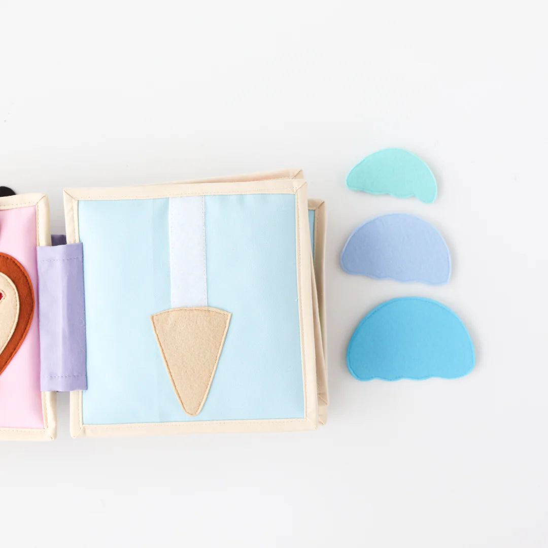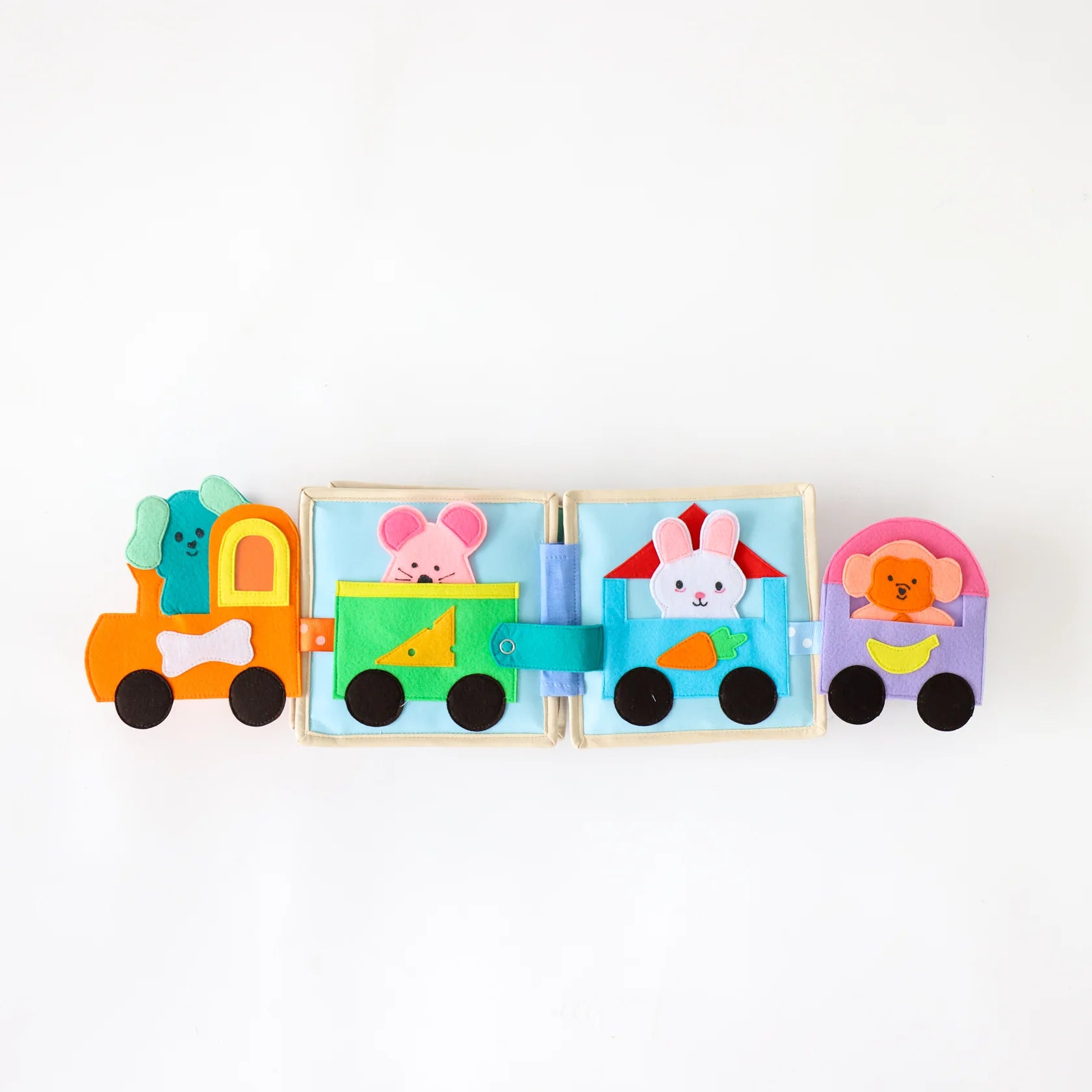 A delightful journey for little hands and curious minds! This cute-as-a-button book develops threading, hand-eye coordination and color recognition. With magnetic fishing, finger puppets with their favourite foods (matching), zippers, shading matching, small to large and an elasticated buttons, perfect for little fingers. Recommended Age: 18 months - 4 years old.