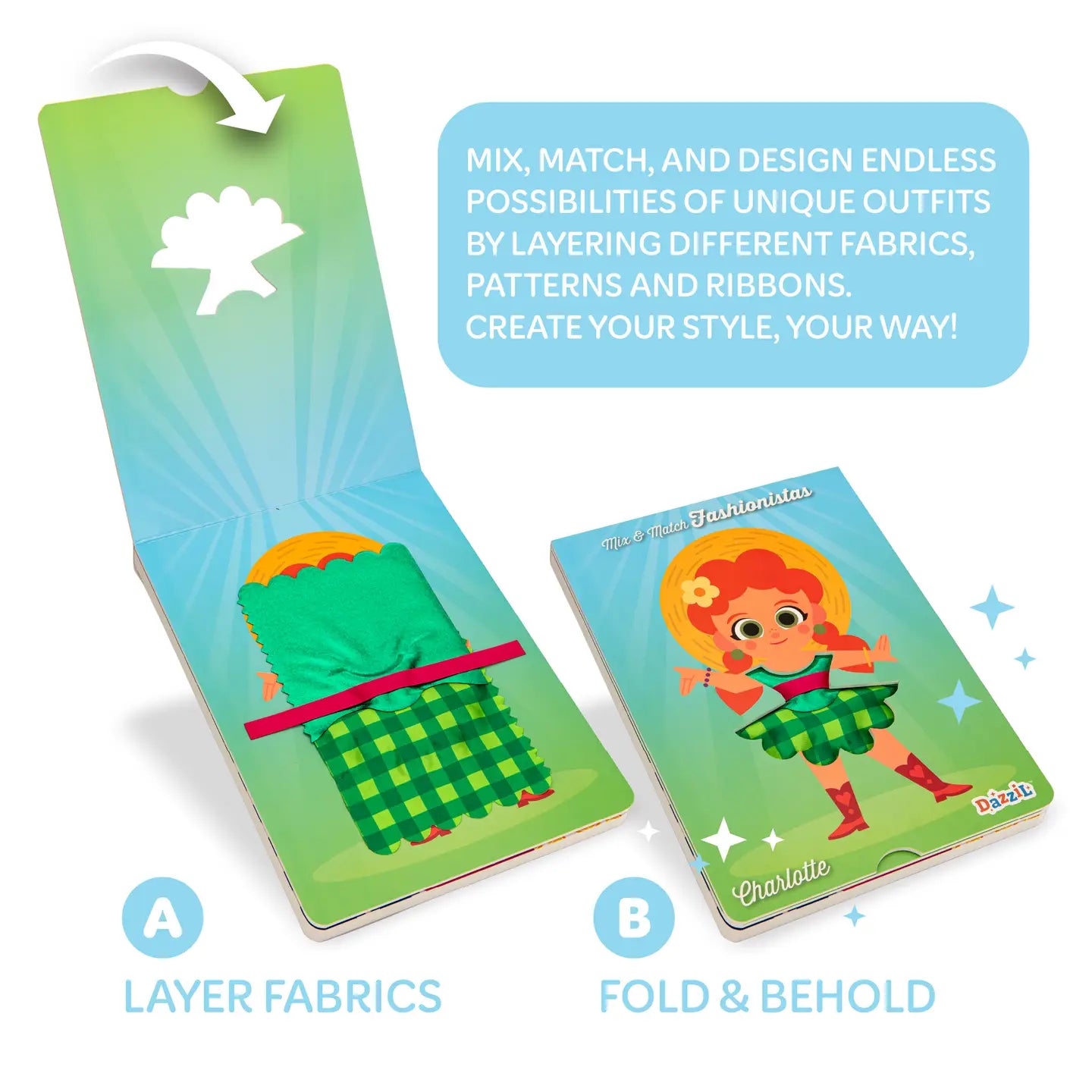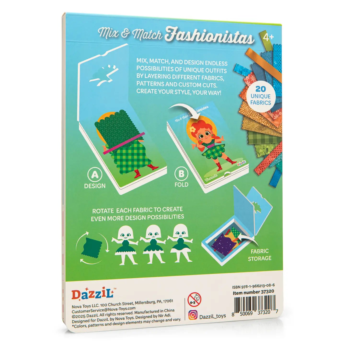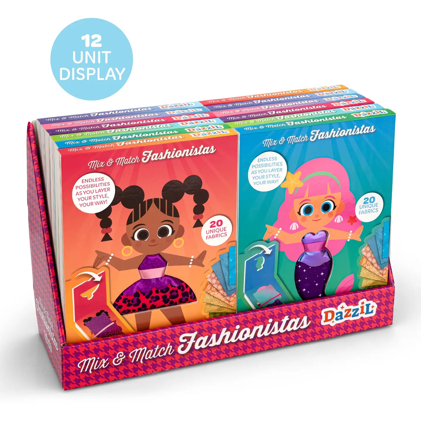 Get ready for endless fashion fun—no sewing, gluing, or scissors required! With Mix & Match Fashionistas, kids can unleash their inner designer by layering fabric pieces to create stylish outfits again and again. Just open the frame, position and layer the fabrics, close it, and reveal a fabulous new look. Then start all over again with a completely new style! Each set includes 20 unique fabric pieces, a storage unit to keep everything organized, and one of six different Fashionistas to dress up. A free counter display is included when you order 12 sets. This imaginative, no-mess play activity encourages creativity, fine motor skills, and storytelling through fashion.
