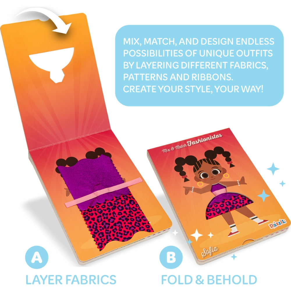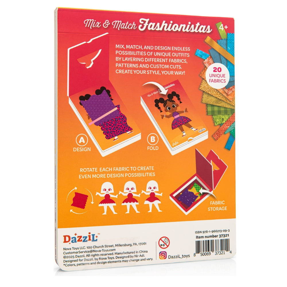 Con Mix & Match Fashionistas, ¡los niños pueden convertirse en estilistas! Crea infinidad de conjuntos superponiendo telas dentro del marco, sin necesidad de coser, pegar ni usar tijeras. Esta actividad interactiva y creativa permite a los niños diseñar, personalizar y expresar su propio estilo, fomentando la imaginación y la exploración de la moda. ¡Es la manera perfecta para que los aspirantes a diseñadores de moda se diviertan creando looks únicos!