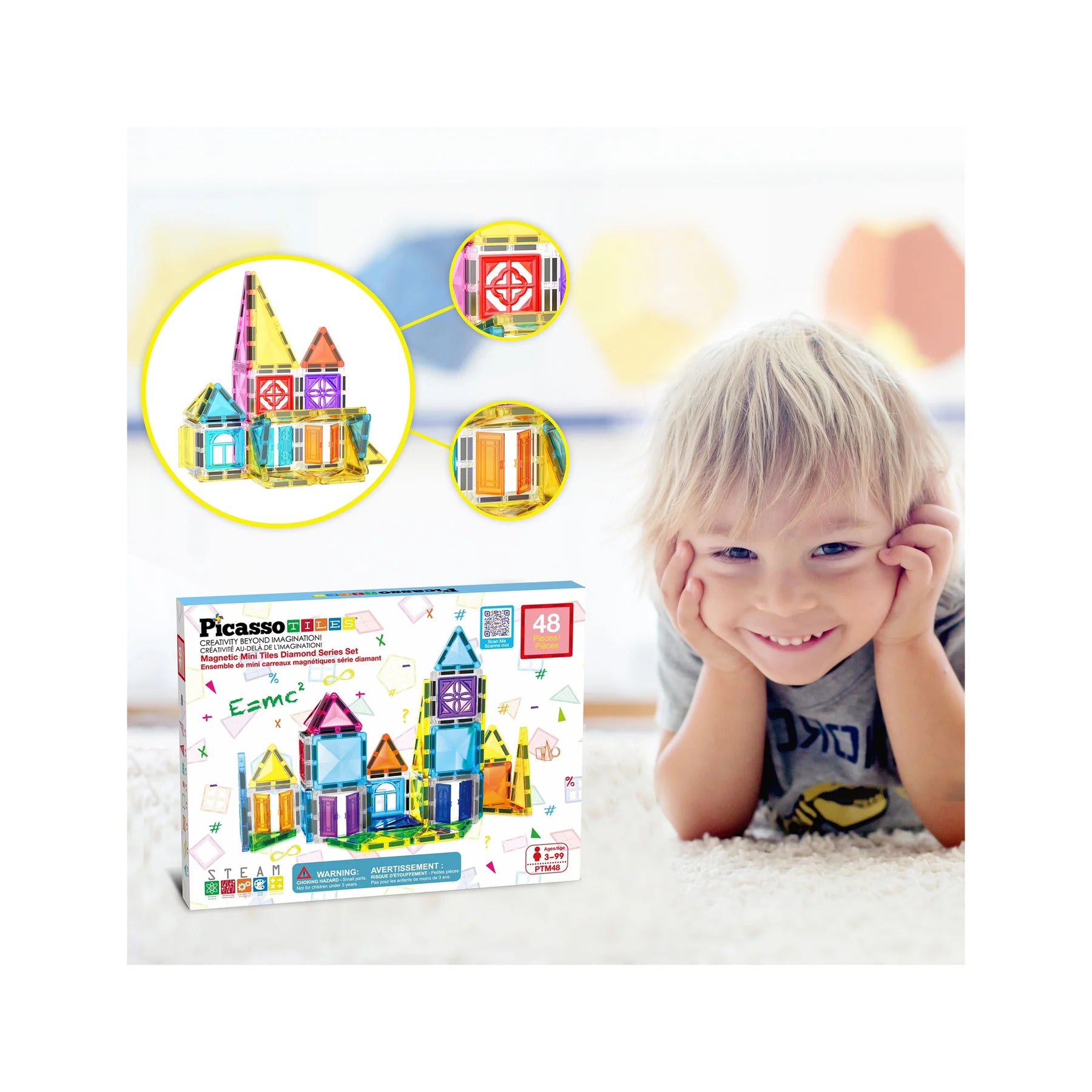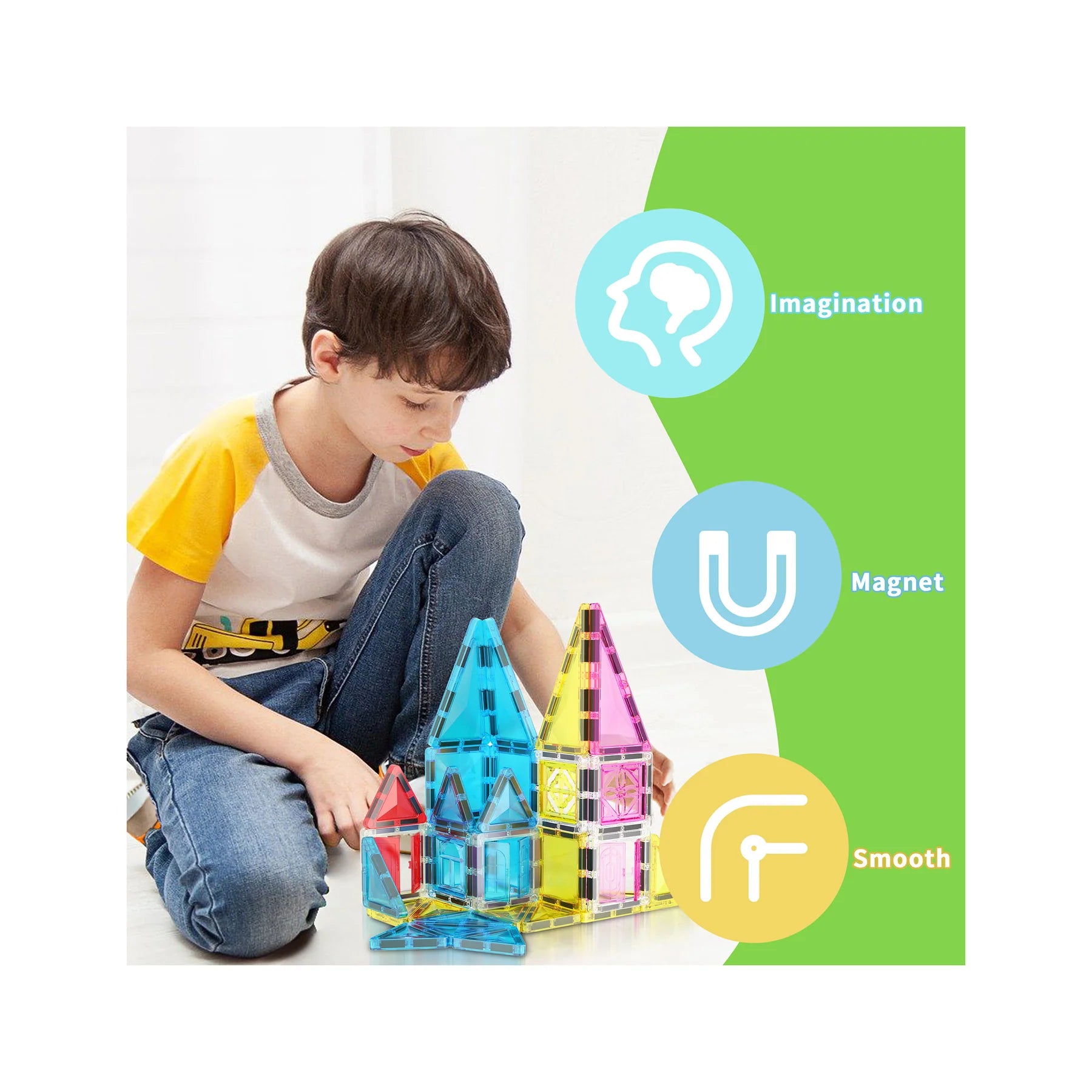 Playset features 33 tile blocks with a diamond-like surface, 6 clip-on doors, 3 operable windows, and 6 hollow squares. Empower children to shape their own pretend play narratives and envision grand structured designs. With every new building creation, a world of adventure unfolds, inspiring young minds to think boldly and dream without limits.