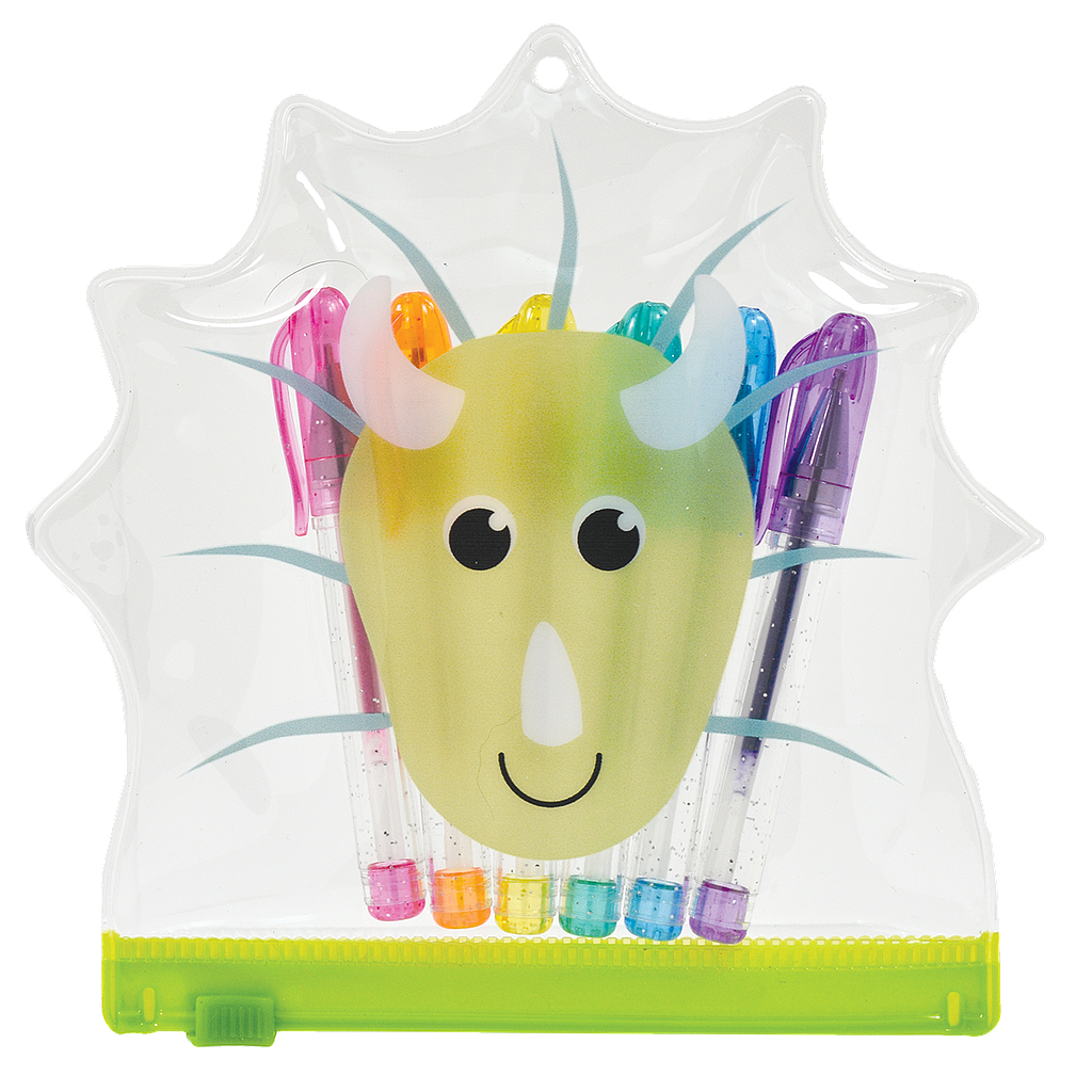 Our dinonsaur mini gel pen set is ROARsome! This set of six rainbow-colored mini gel pens comes in a zippered bag with a friendly triceratops face design. Perfect for letter writing, keeping busy during long car rides and more, this adorable set makes a great gift.